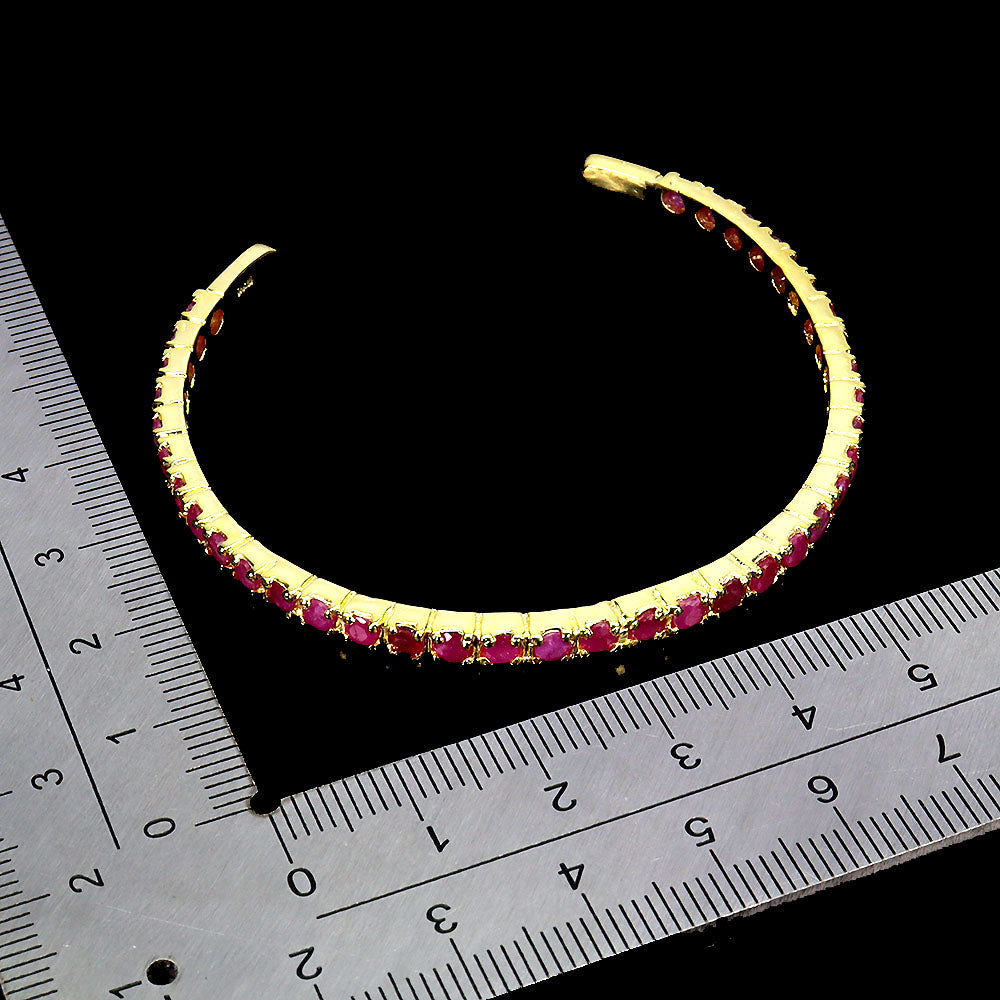 925 Sterling Silver Bangle Round Ruby 2.5mm Natural Gemstone Jewelry 5.9inches
