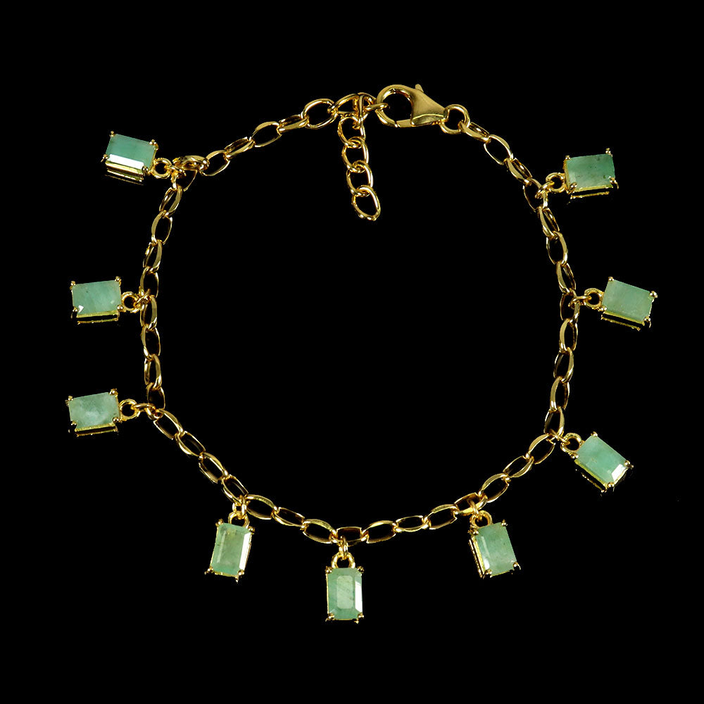 925 Sterling Silver Bracelet Octagon Emerald 6x4mm Gemstone Jewelry 7.5inches