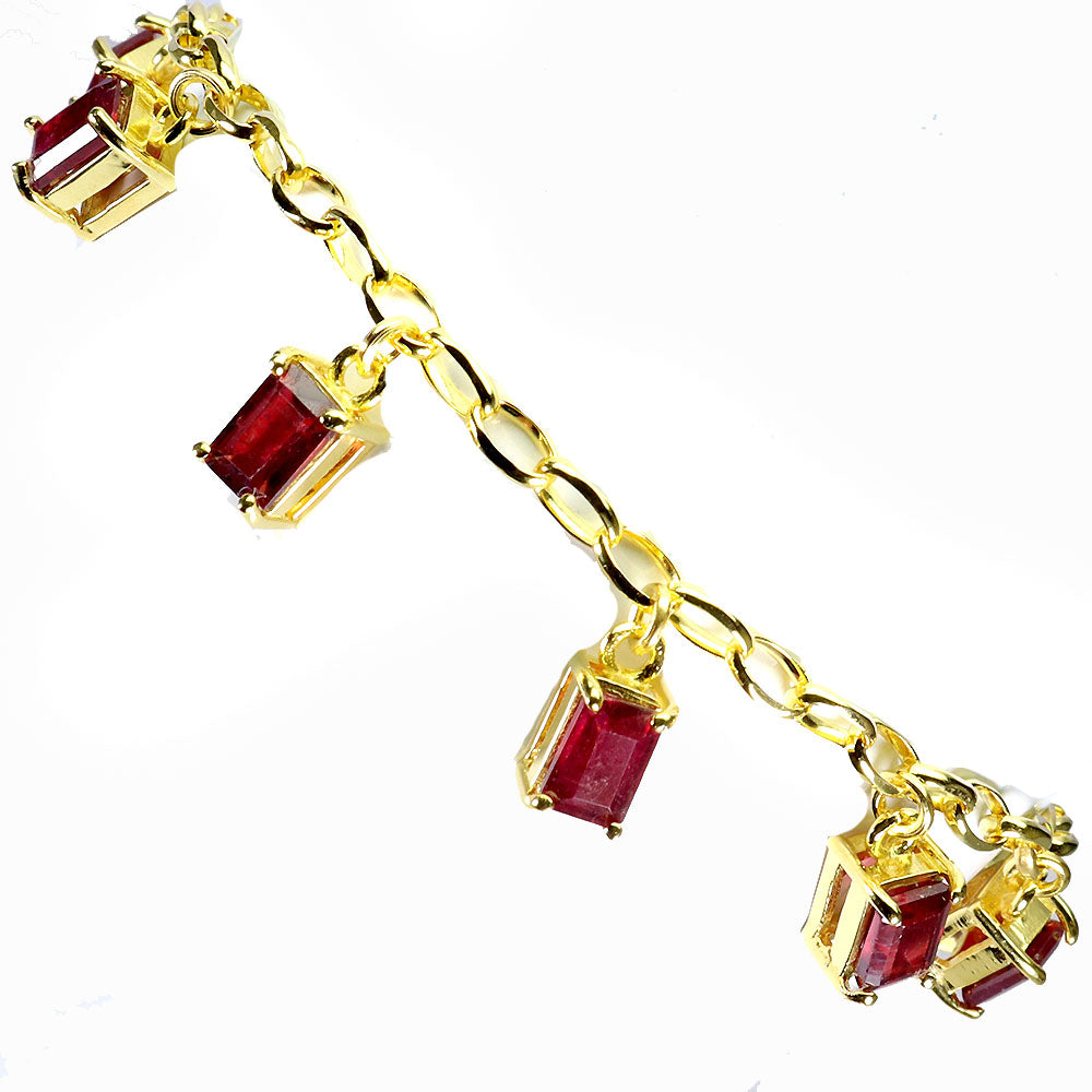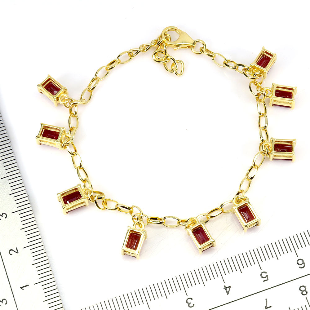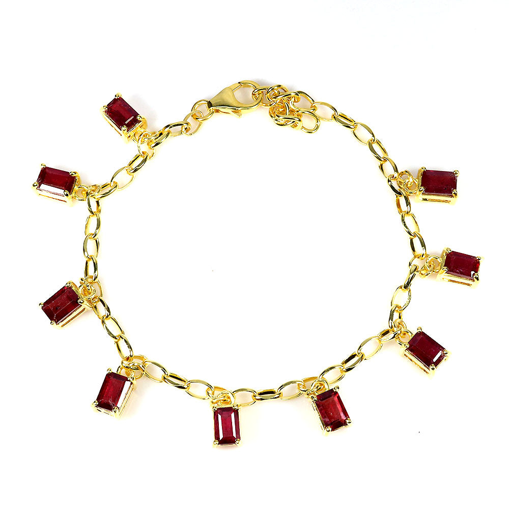 925 Sterling Silver Bracelet Octagon Ruby 6x4mm Natural Gemstone Jewelry 8inches