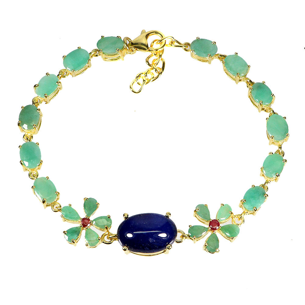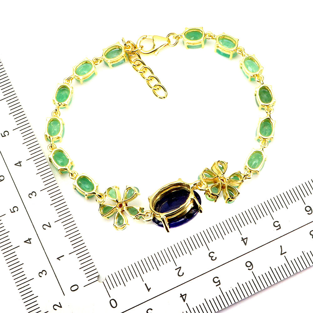 925 Sterling Silver Bracelet Oval Blue Sapphire 14x10mm Ruby Gemstone Jewelry 8
