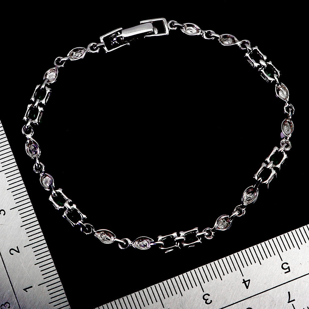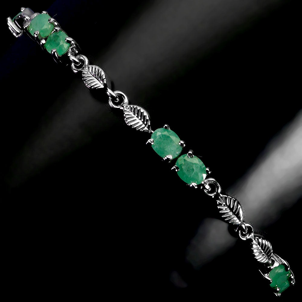 925 Sterling Silver Bracelet Oval Emerald 5x4mm Natural Gemstone Jewelry 7.5in