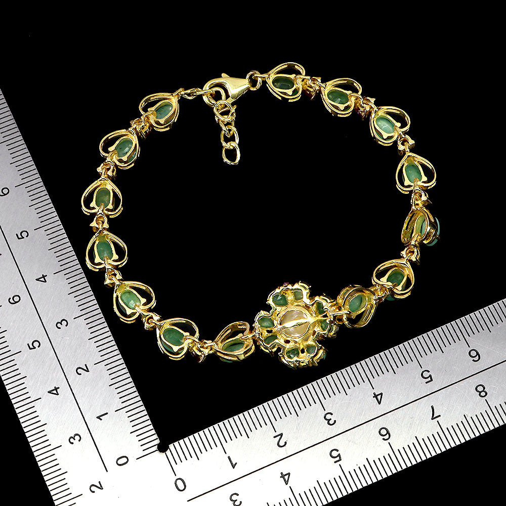 925 Sterling Silver Bracelet Oval Emerald 6x4mm Pearl Ruby Gemstone Jewelry 8 In
