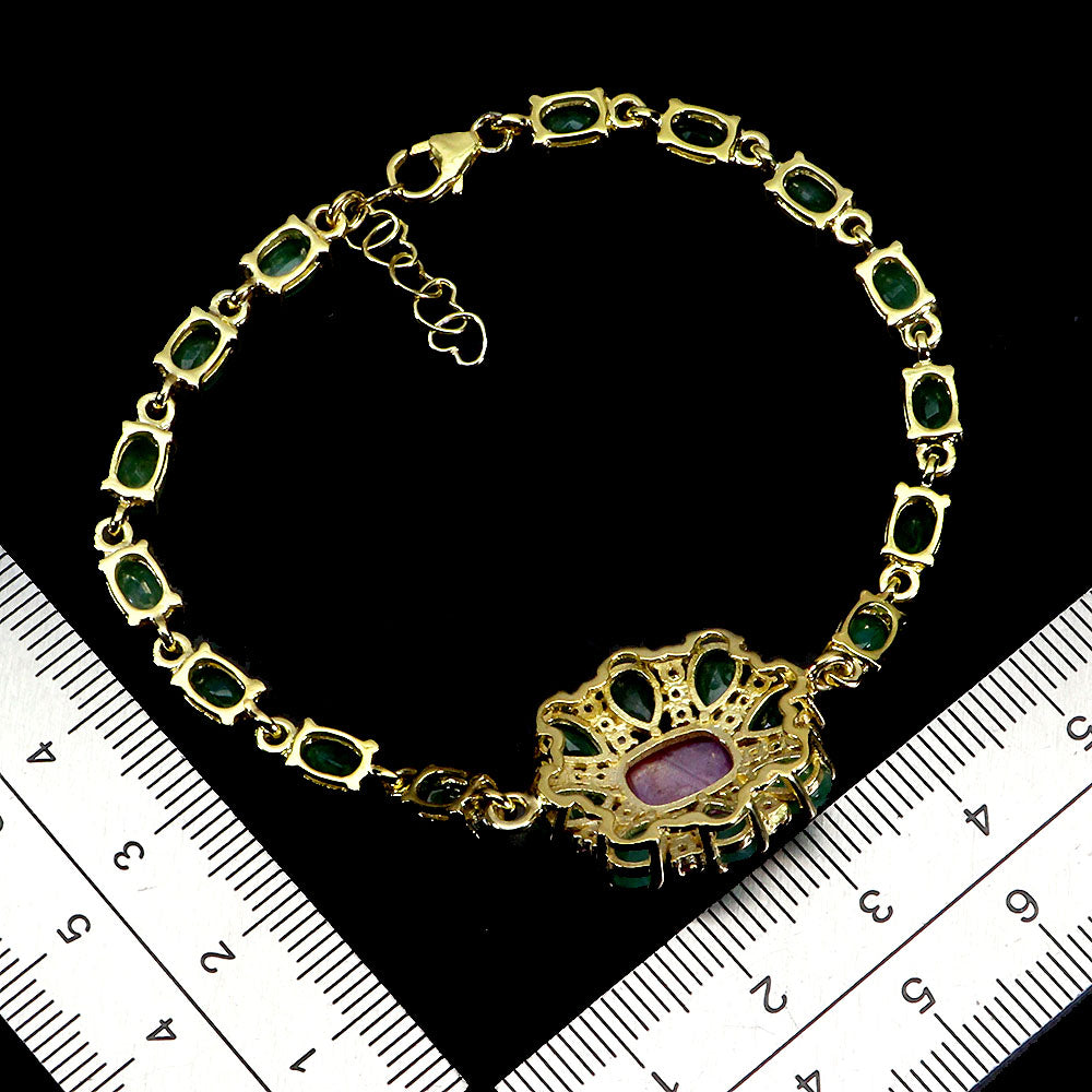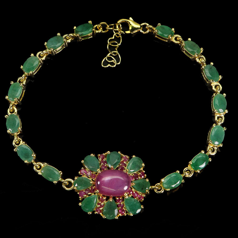 925 Sterling Silver Bracelet Oval Ruby 10x8mm Emerald Gemstone Jewelry 7.5inches