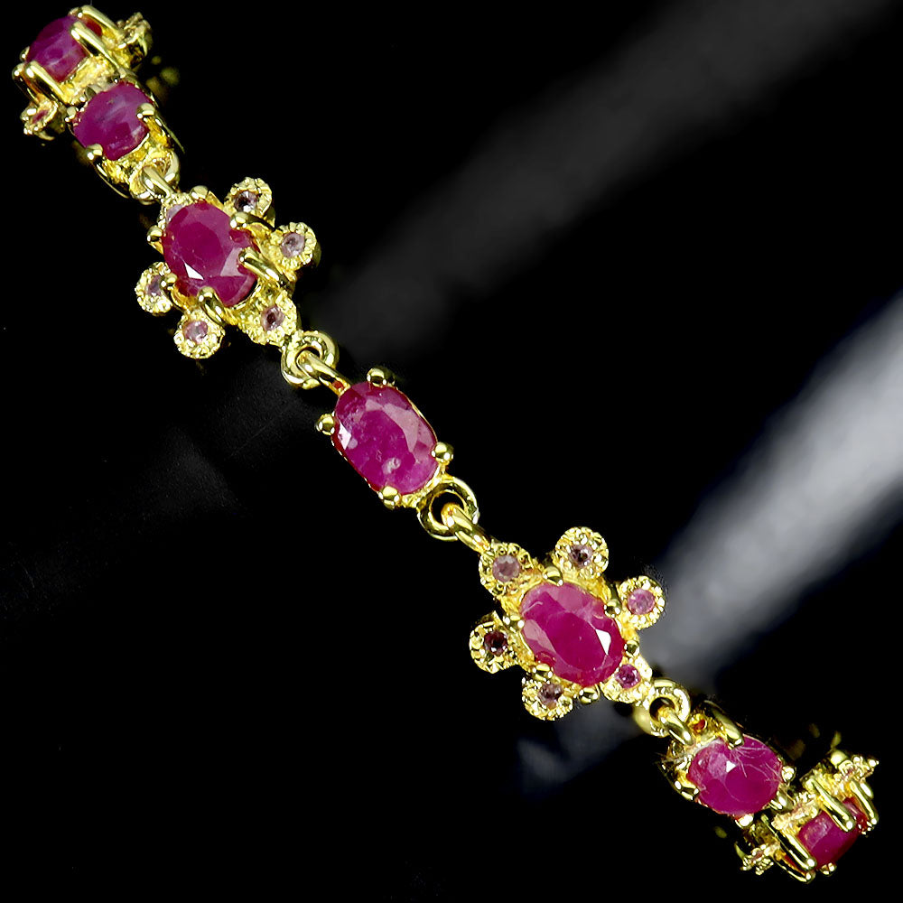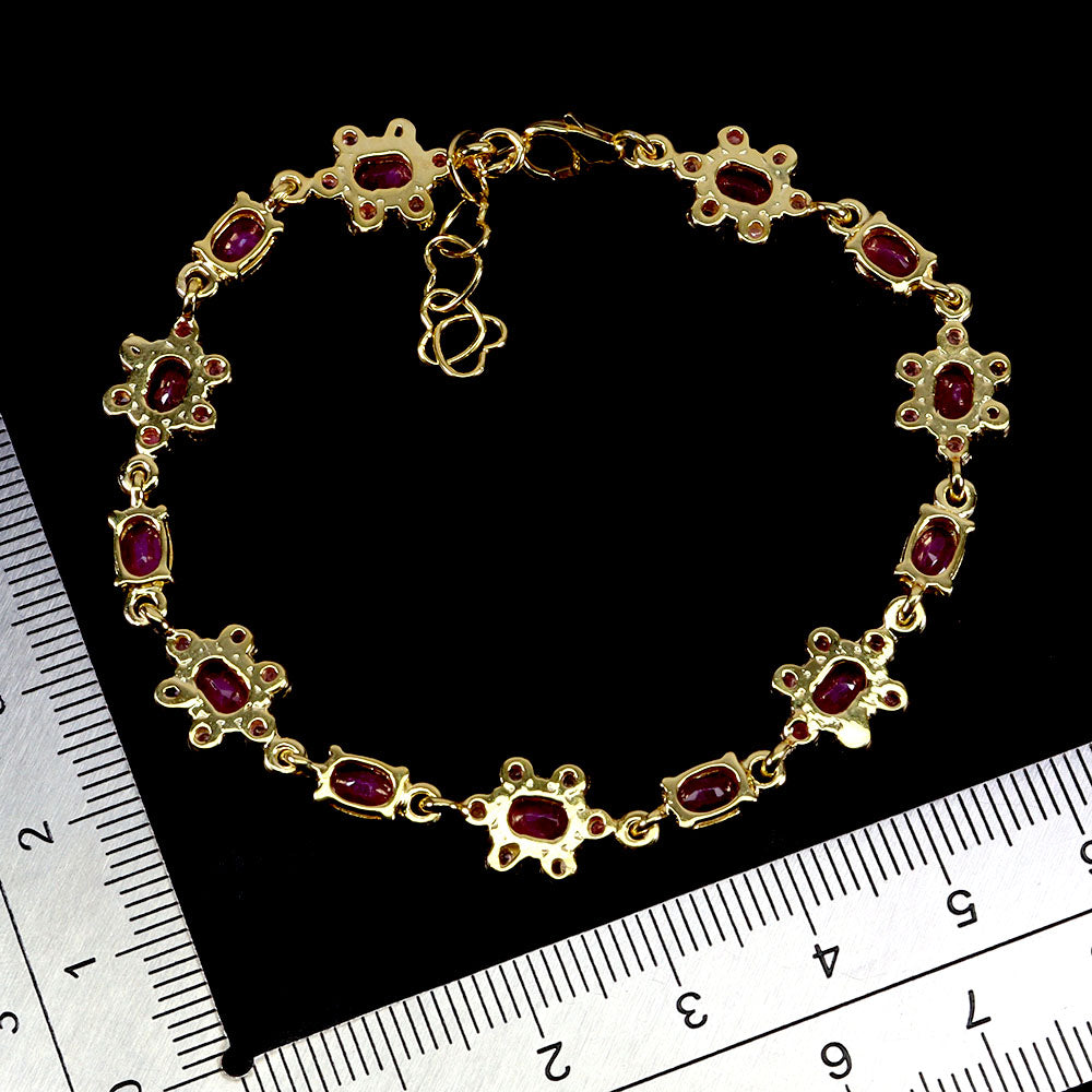 925 Sterling Silver Bracelet Oval Ruby 6x4mm Natural Gemstone Jewelry 7inches