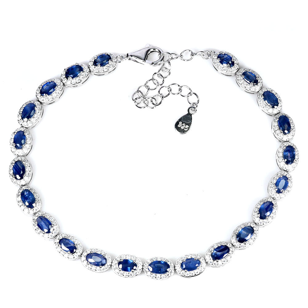 925 Sterling Silver Bracelet Oval Sapphire 5x3mm Natural Gemstone Jewelry 8 Inch
