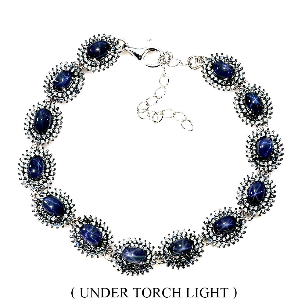 925 Sterling Silver Bracelet Oval Star Sapphire 6x4mm Sapphire Gemstone 8.5 Inch