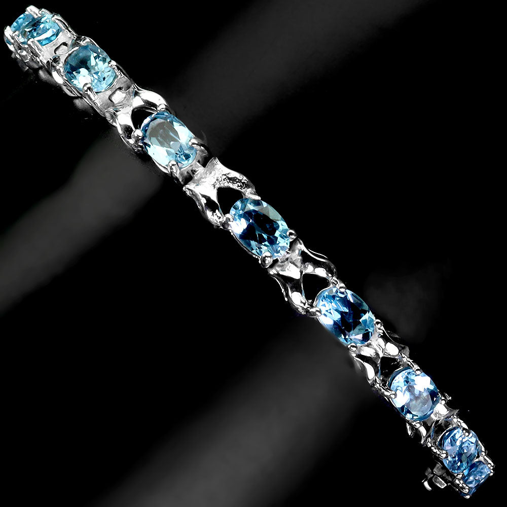 925 Sterling Silver Bracelet Oval Swiss Blue Topaz 6x4mm Gemstone Jewelry 7in