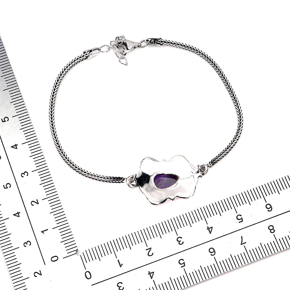 925 Sterling Silver Bracelet Pear Amethyst 12x8mm Gemstone Jewelry 8inches