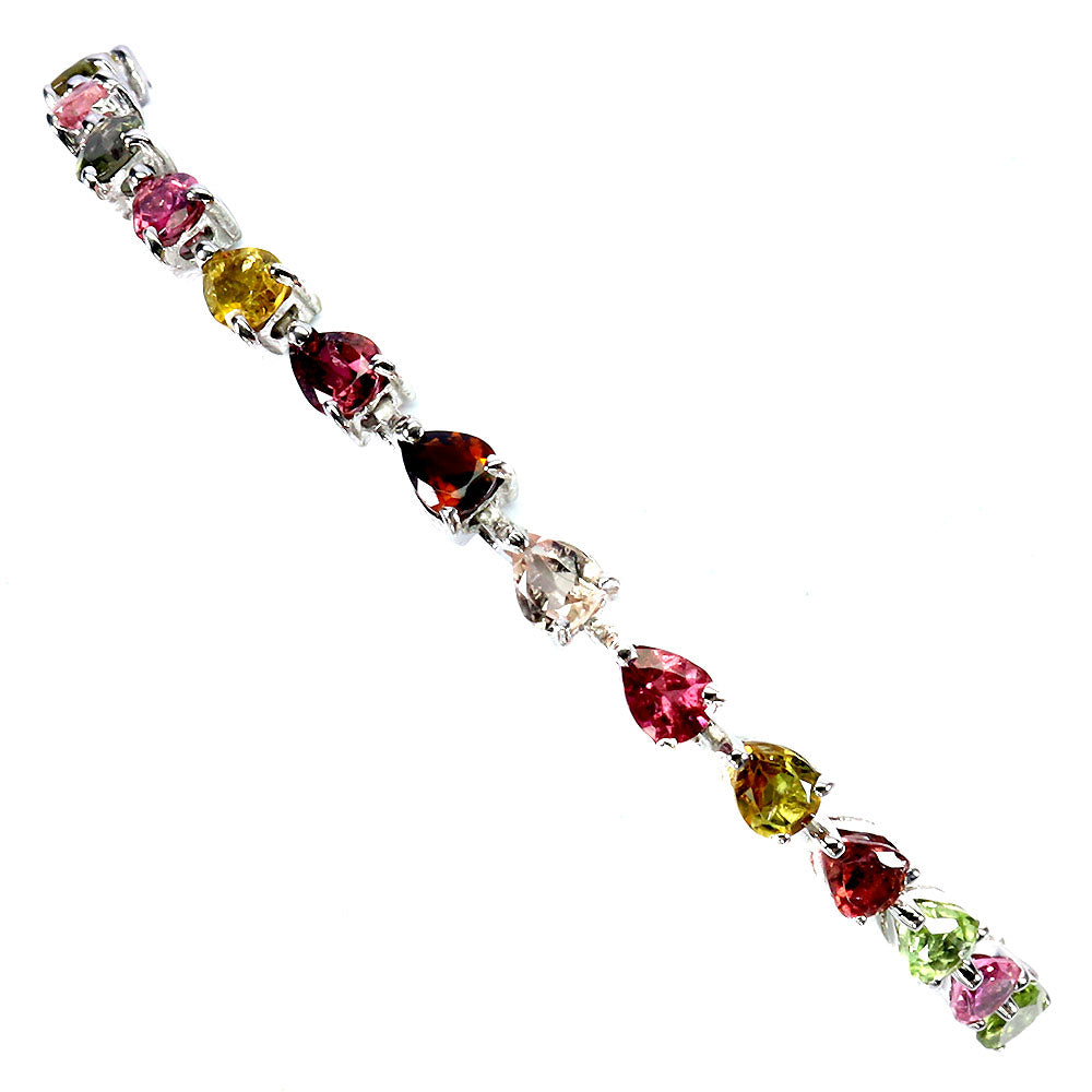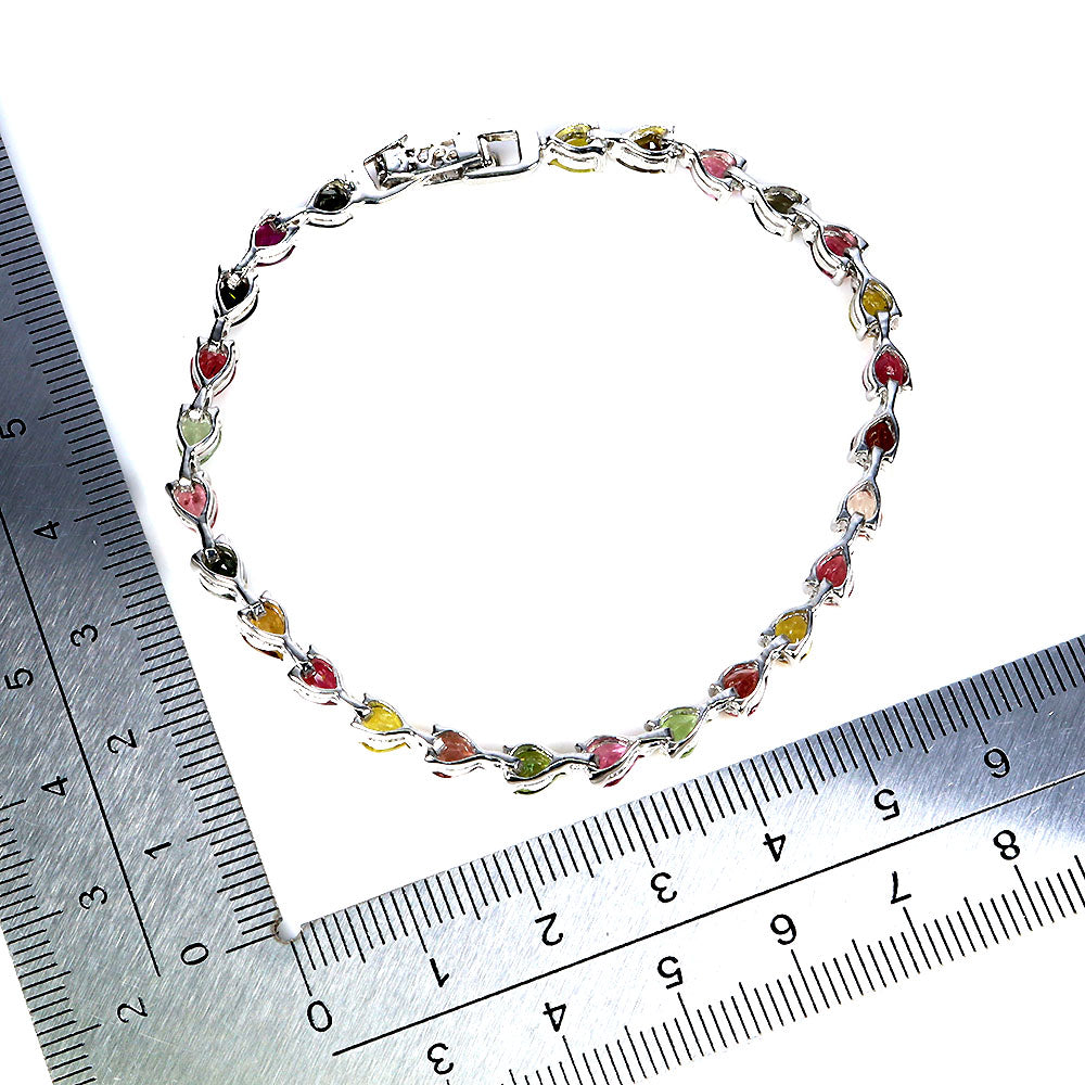 925 Sterling Silver Bracelet Pear Tourmaline 5x4mm Gemstone Jewelry 7.5inches
