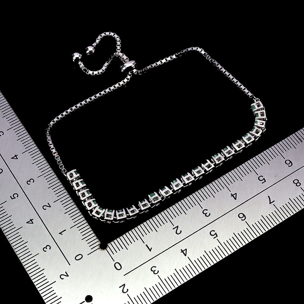 925 Sterling Silver Bracelet Round Emerald 2mm Natural Gemstone Jewelry 10inches