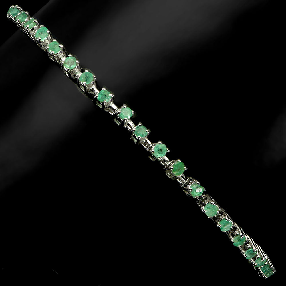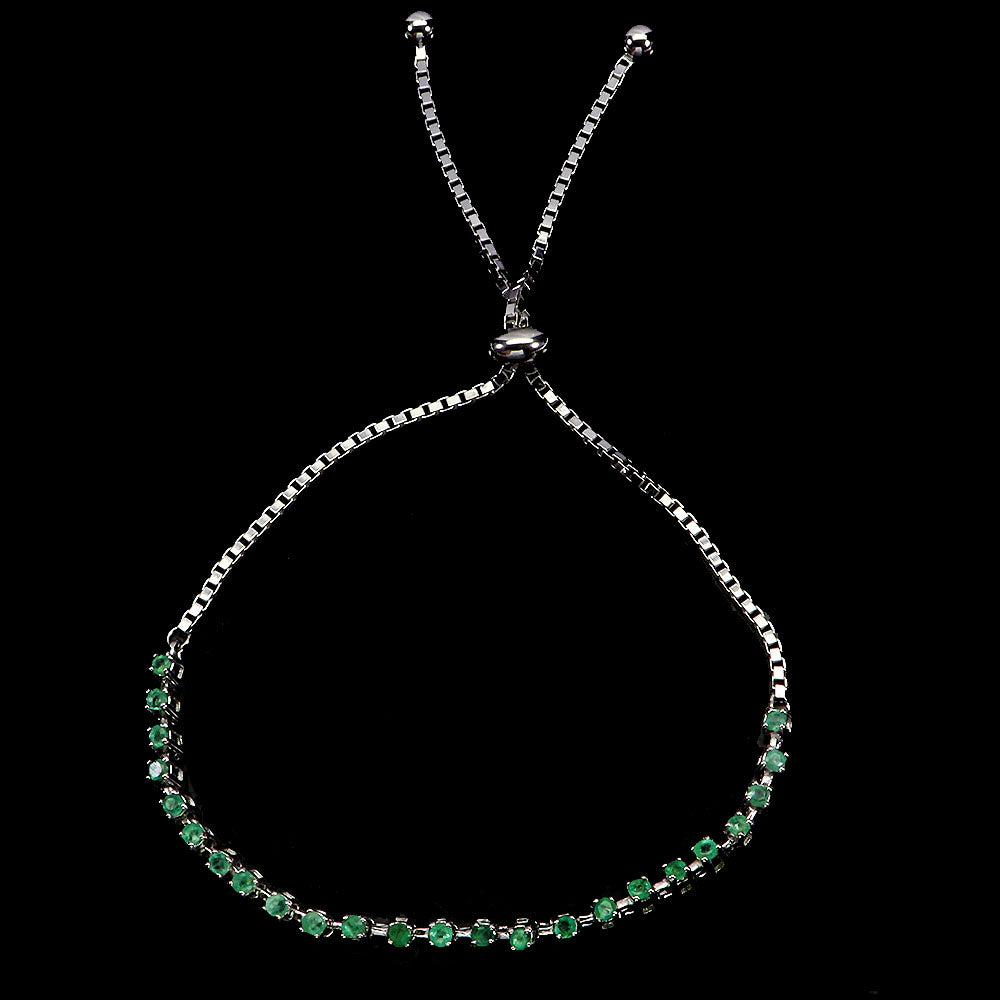 925 Sterling Silver Bracelet Round Emerald 2mm Natural Gemstone Jewelry 9inches