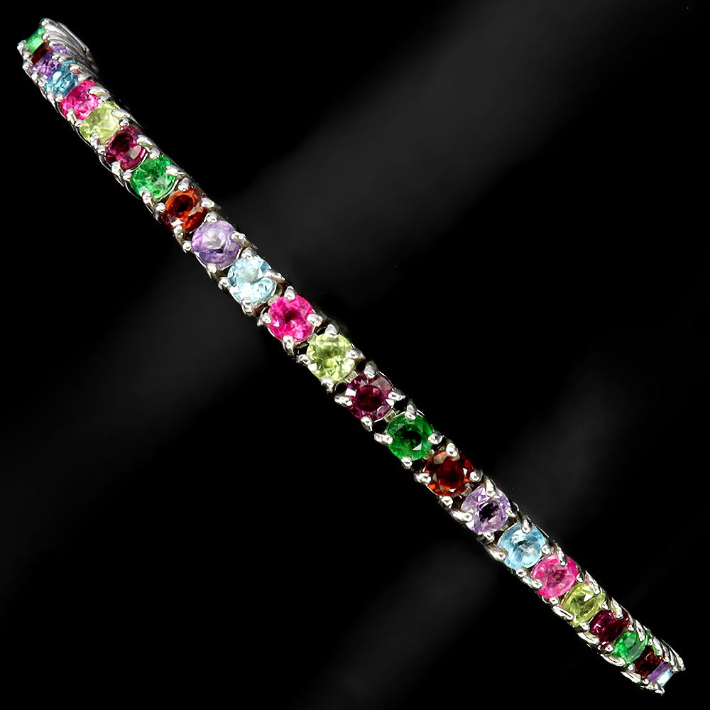 925 Sterling Silver Bracelet Round Pink Topaz Amethyst Gemstone Jewelry 7inches