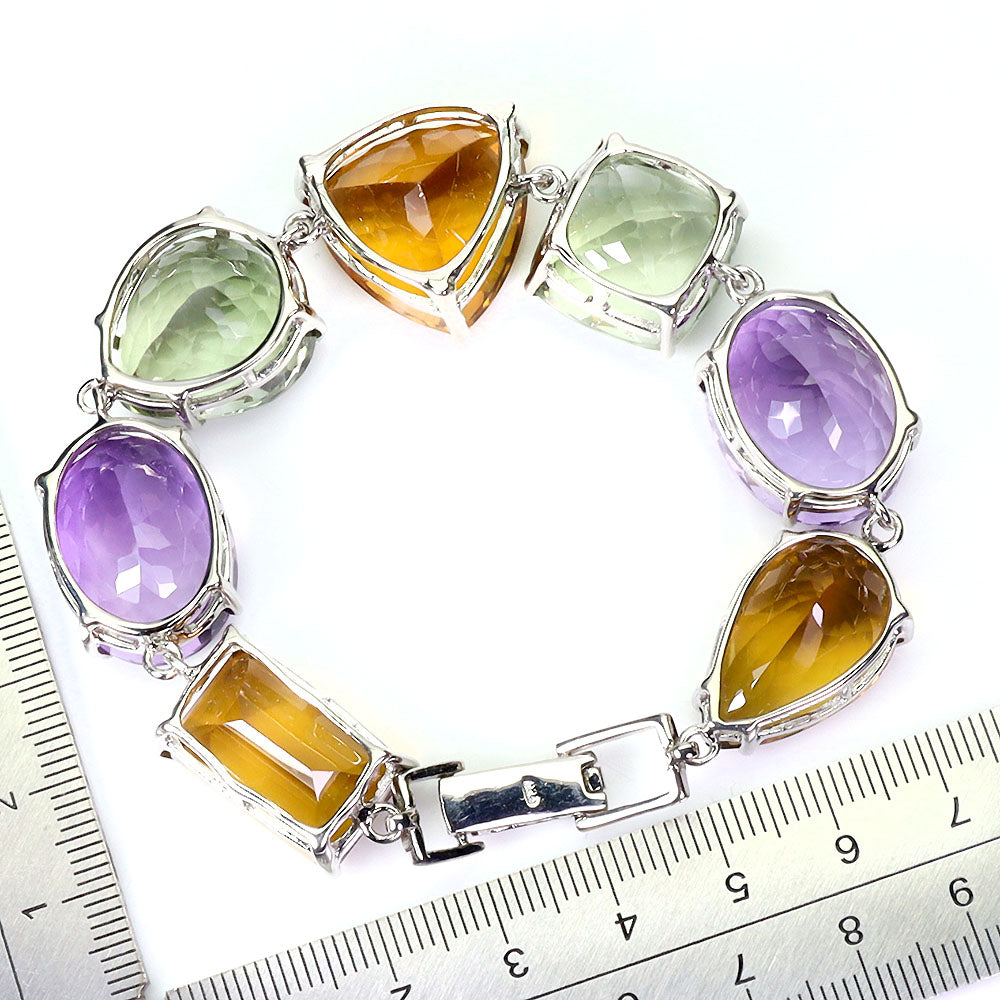 925 Sterling Silver Bracelet Trilliant Citrine 164ct Handmade Gemstone 7.5in