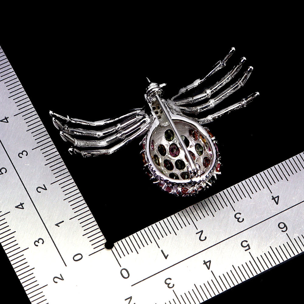 925 Sterling Silver Brooch Oval Tourmaline 4x3mm Rhodolite Gemstone Jewelry