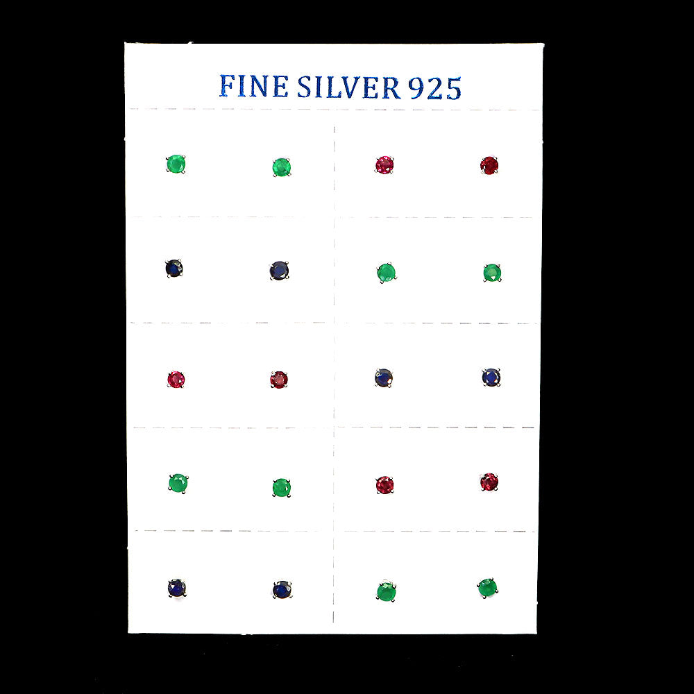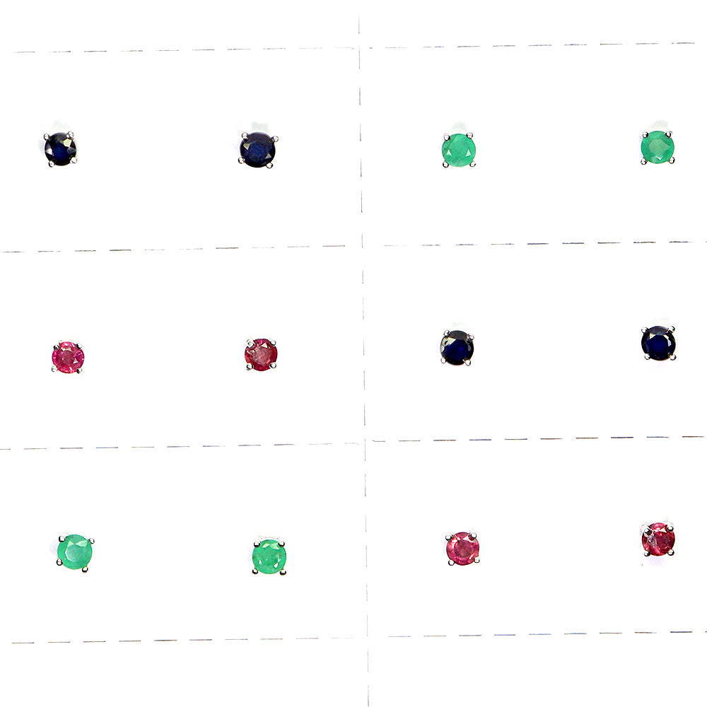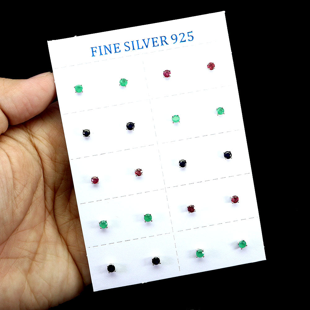 925 Sterling Silver Earrings 10 Pairs Round Emerald Ruby Sapphire Gemstone