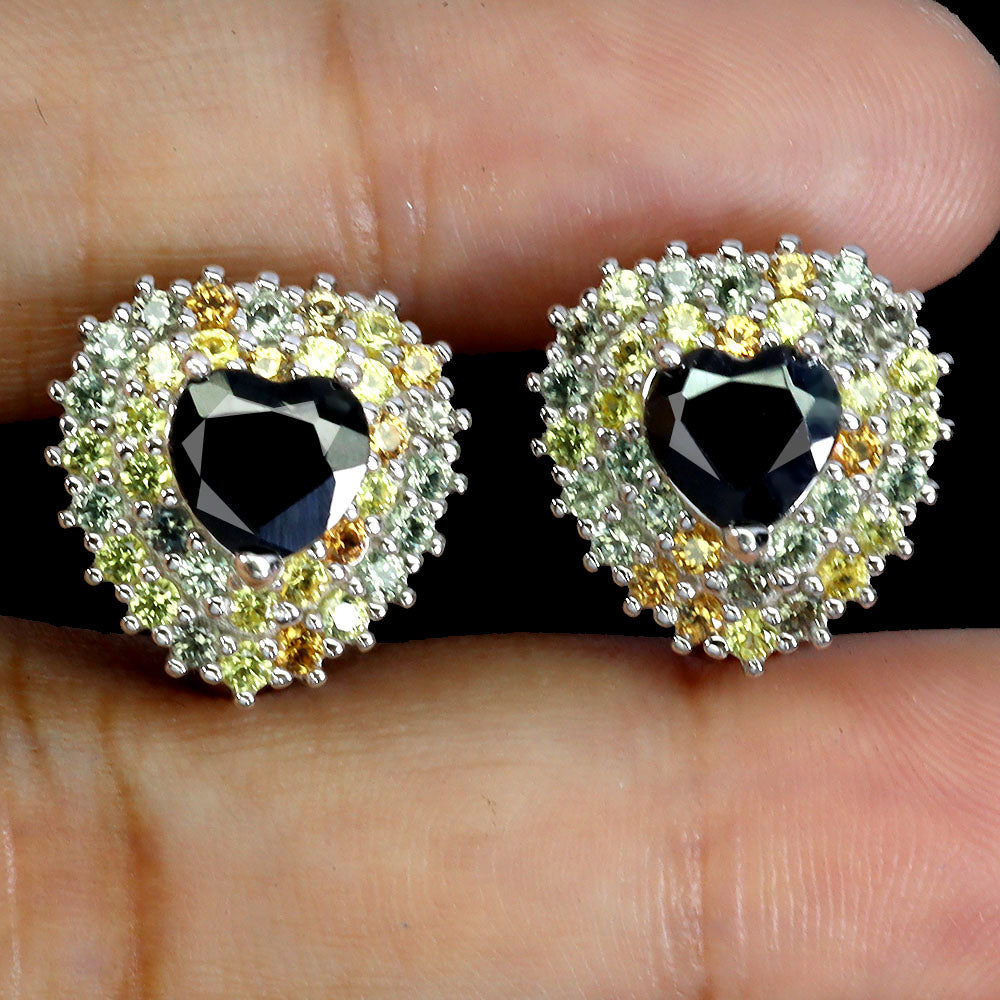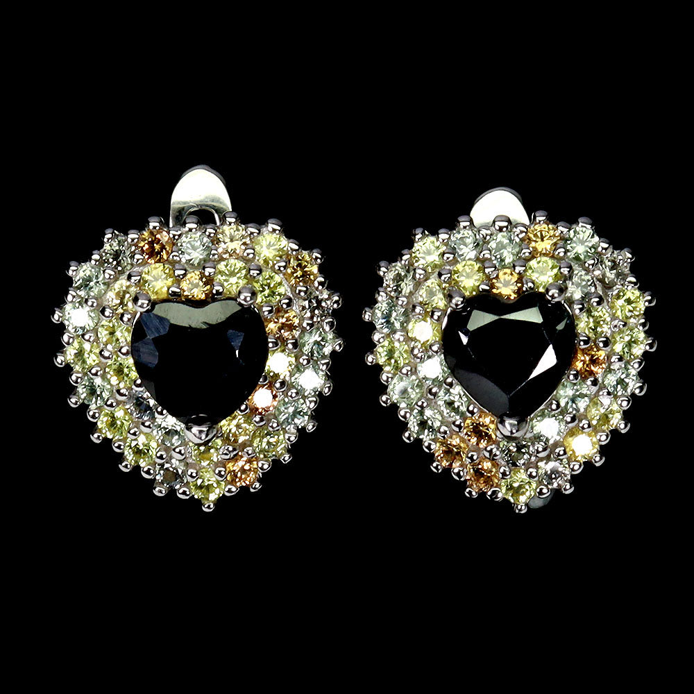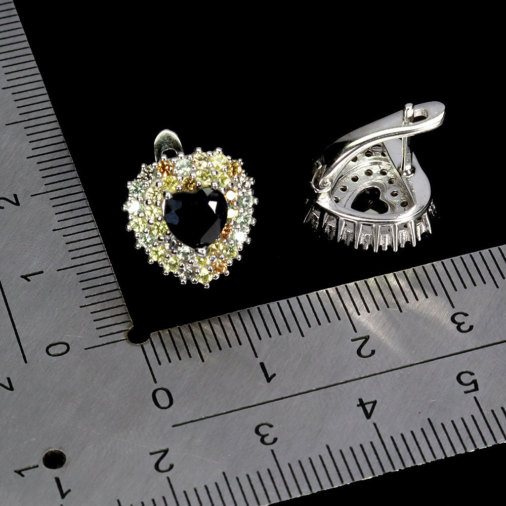925 Sterling Silver Earrings Heart Black Sapphire 6mm Sapphire Gemstone Jewelry