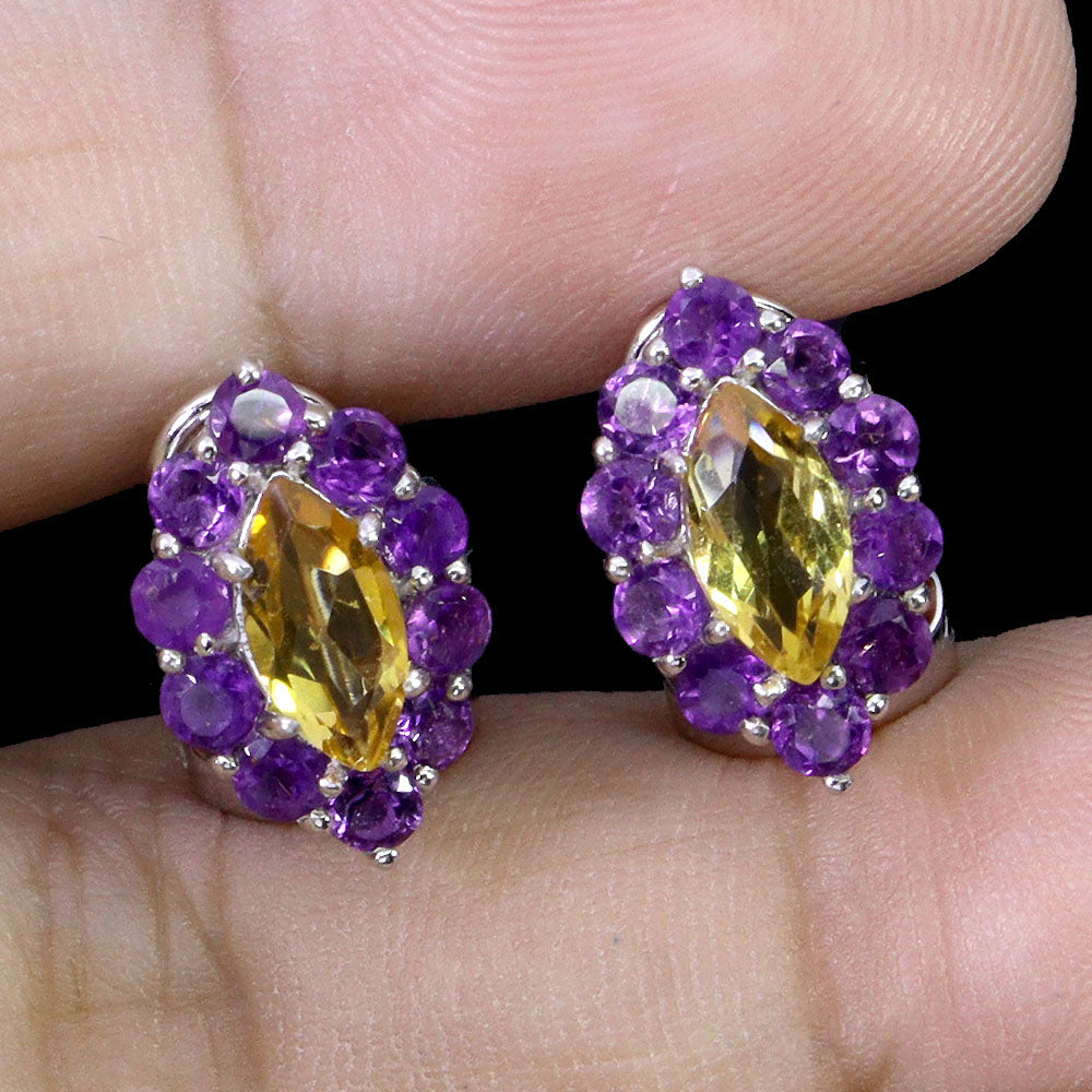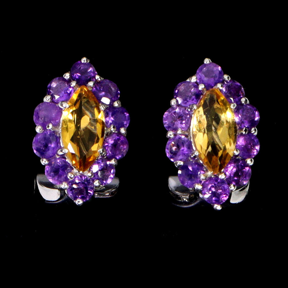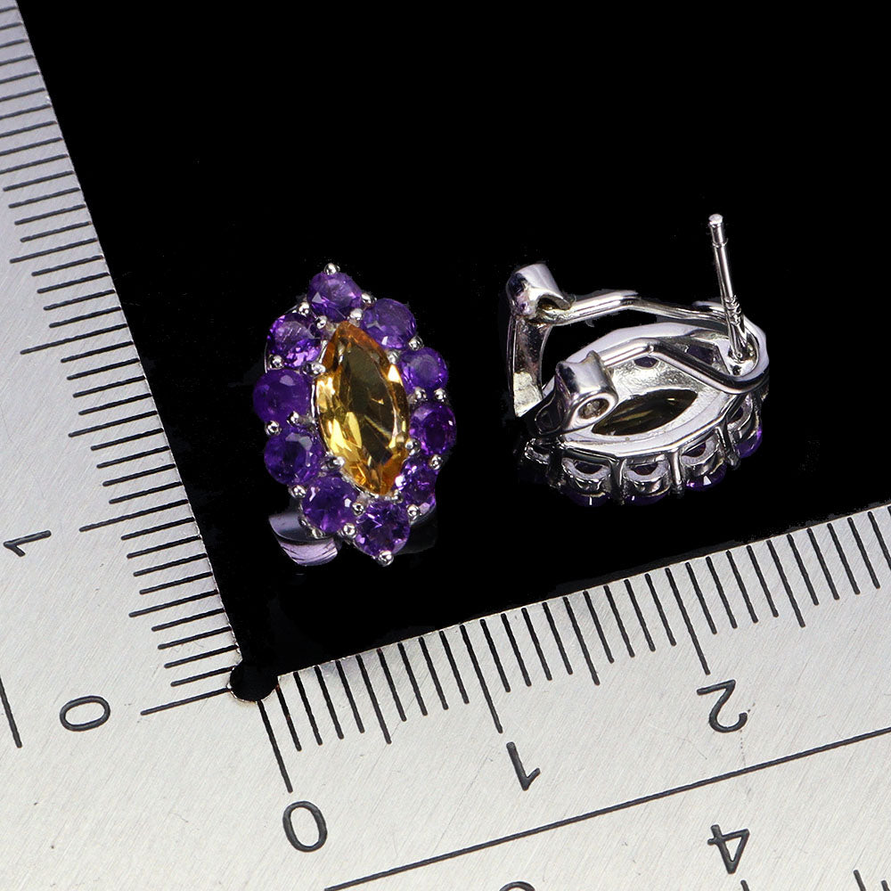 925 Sterling Silver Earrings Marquise Citrine Amethyst Natural Gemstone Jewelry