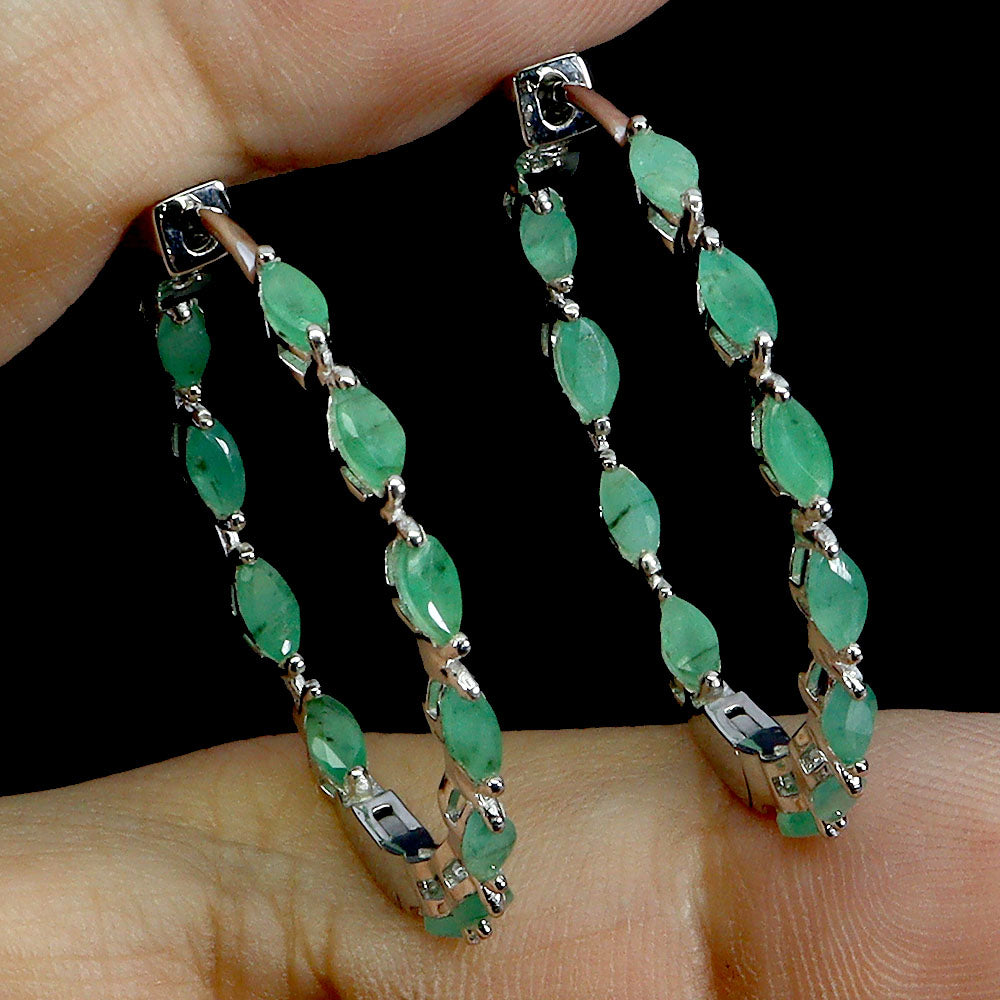 925 Sterling Silver Earrings Marquise Emerald Natural Gemstone Jewelry