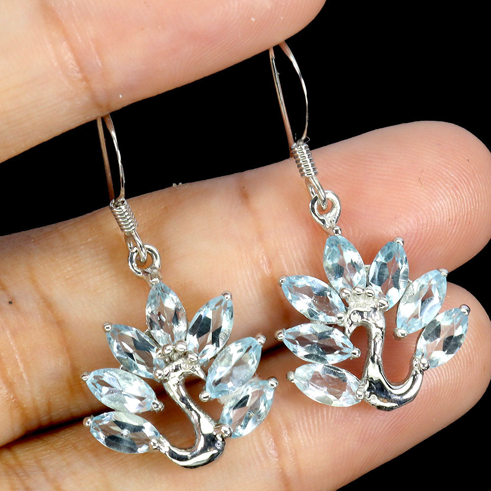 925 Sterling Silver Earrings Marquise Sky Blue Topaz 6x3mm Gemstone Jewelry
