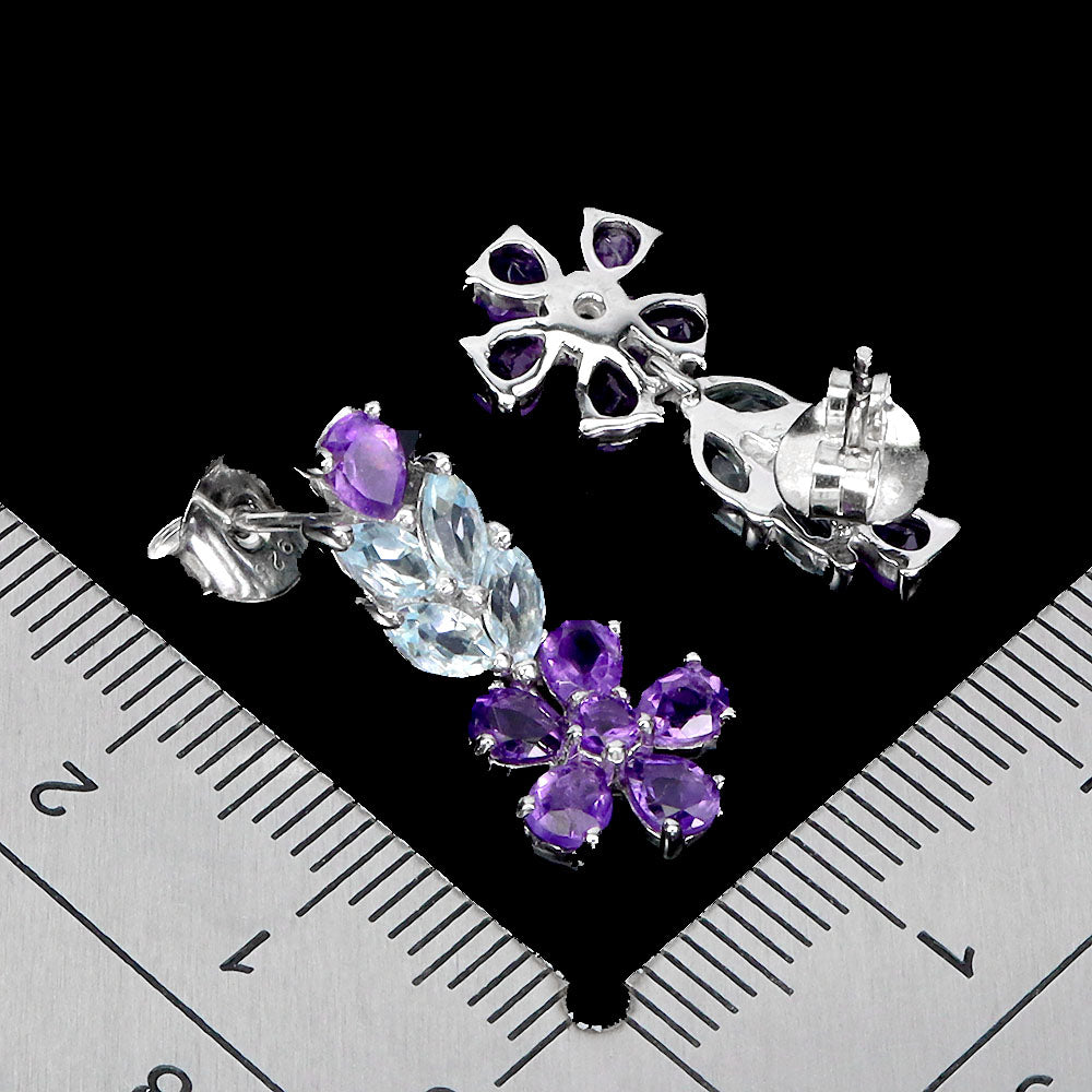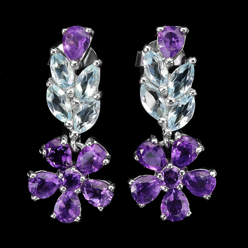 925 Sterling Silver Earrings Marquise Sky Blue Topaz Amethyst Gemstone Jewelry