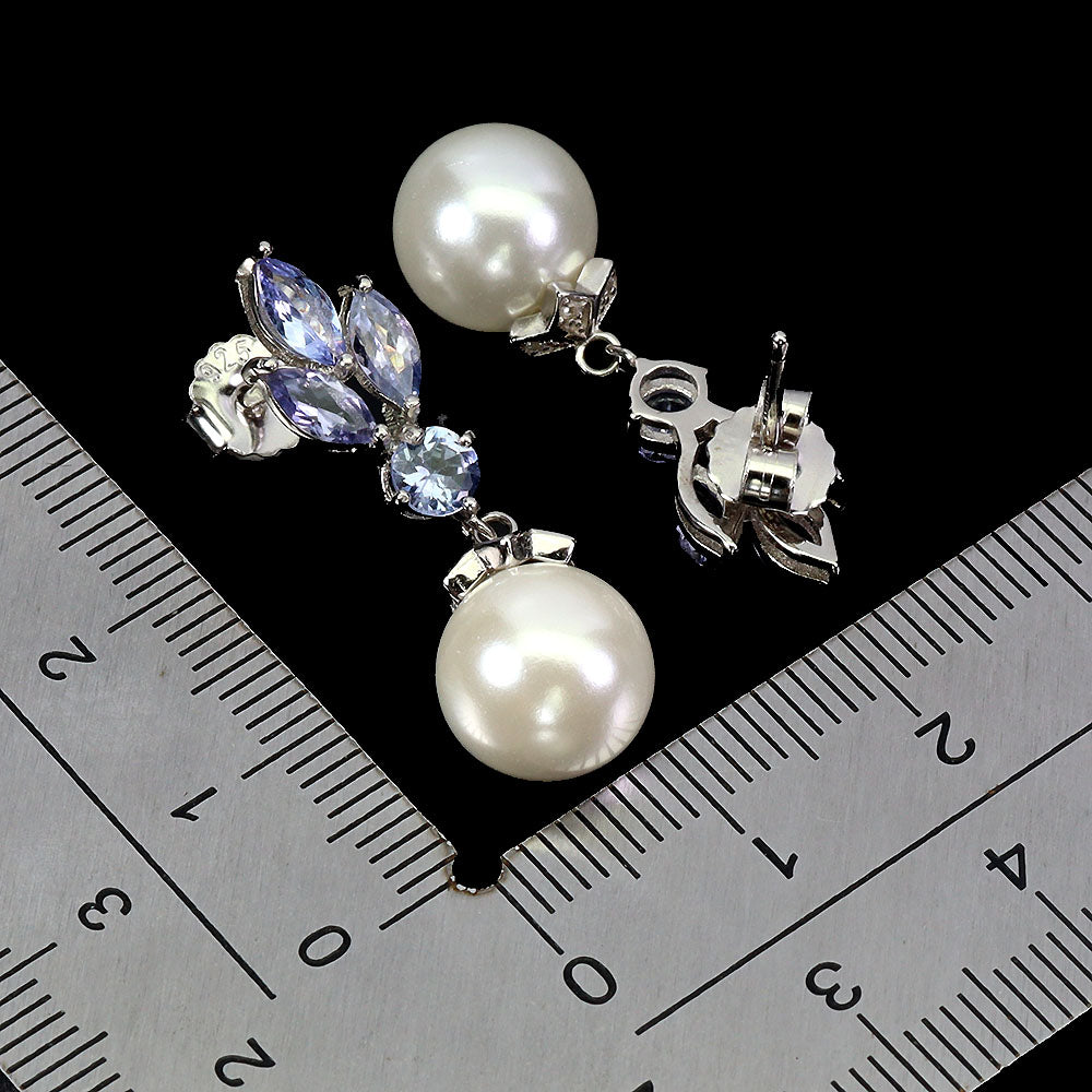 925 Sterling Silver Earrings Marquise Tanzanite 6x3mm Mop Gemstone Jewelry