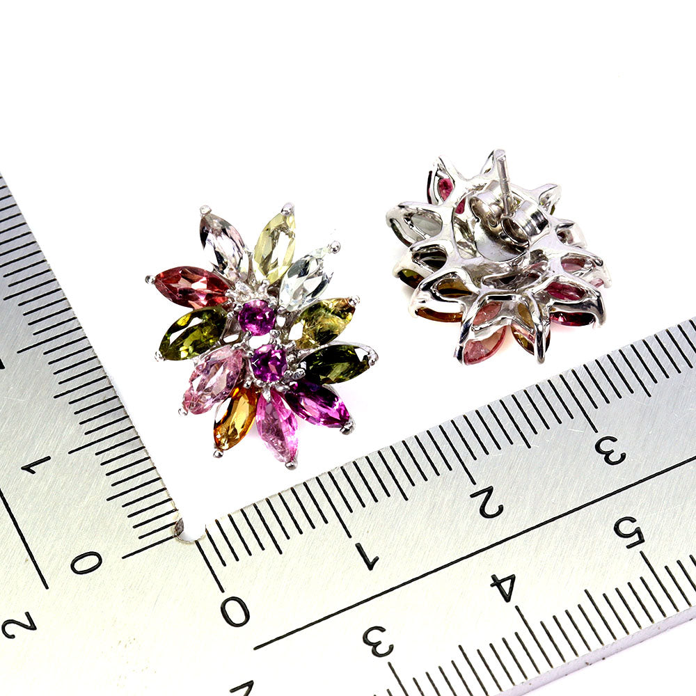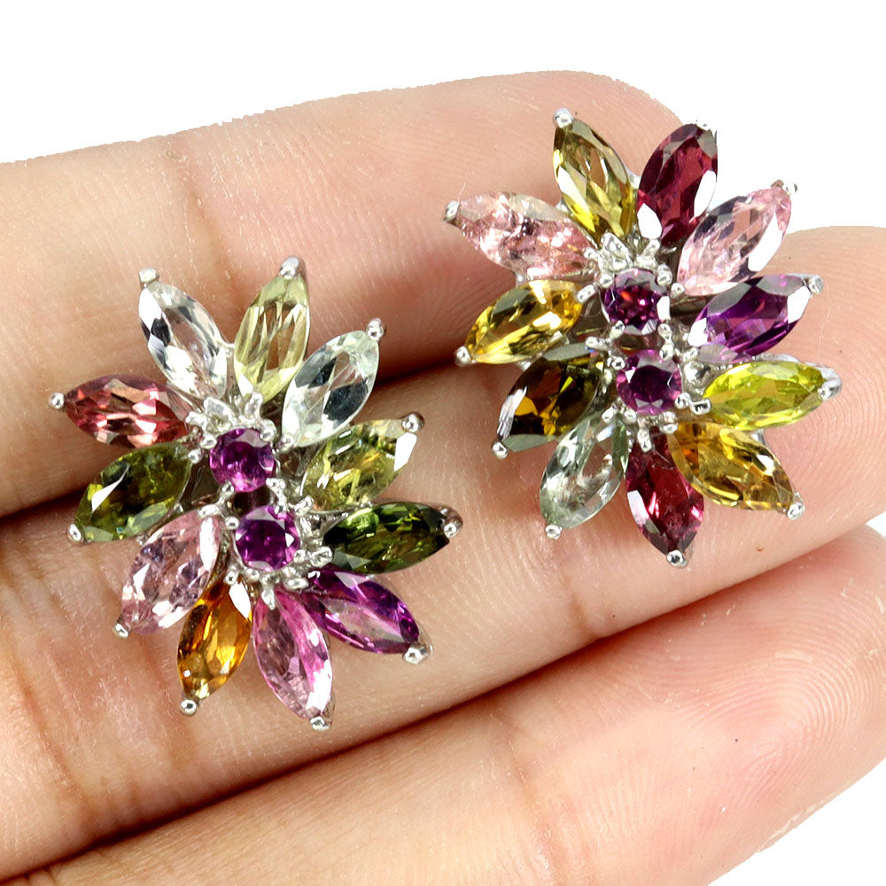 925 Sterling Silver Earrings Marquise Tourmaline Rhodolite Gemstone Jewelry