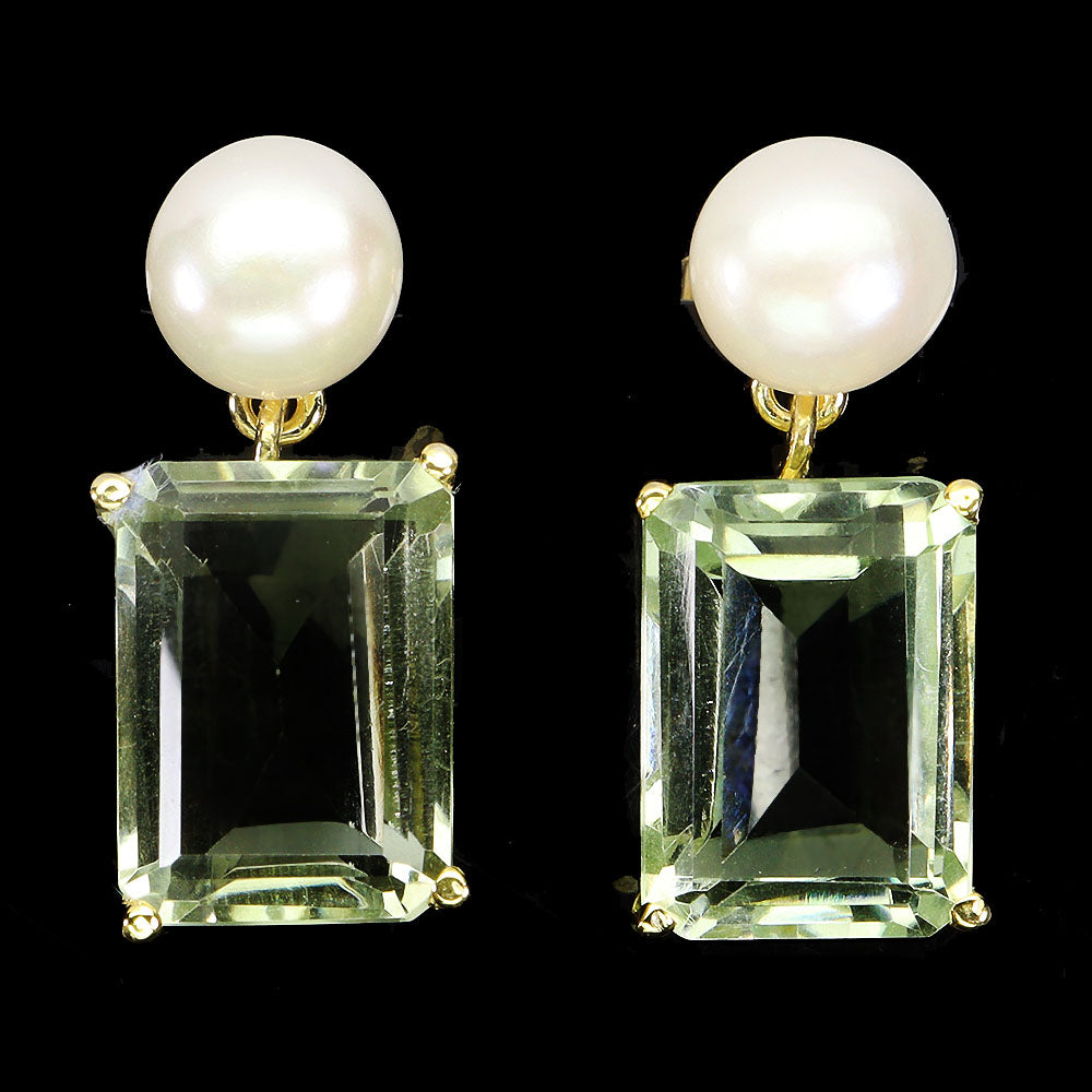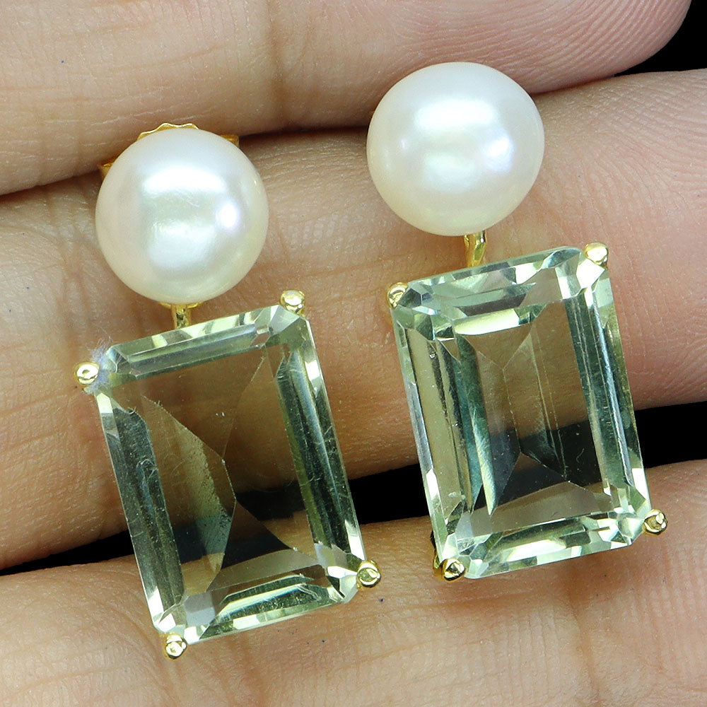 925 Sterling Silver Earrings Octagon Amethyst 14x10mm Pearl Gemstone Jewelry