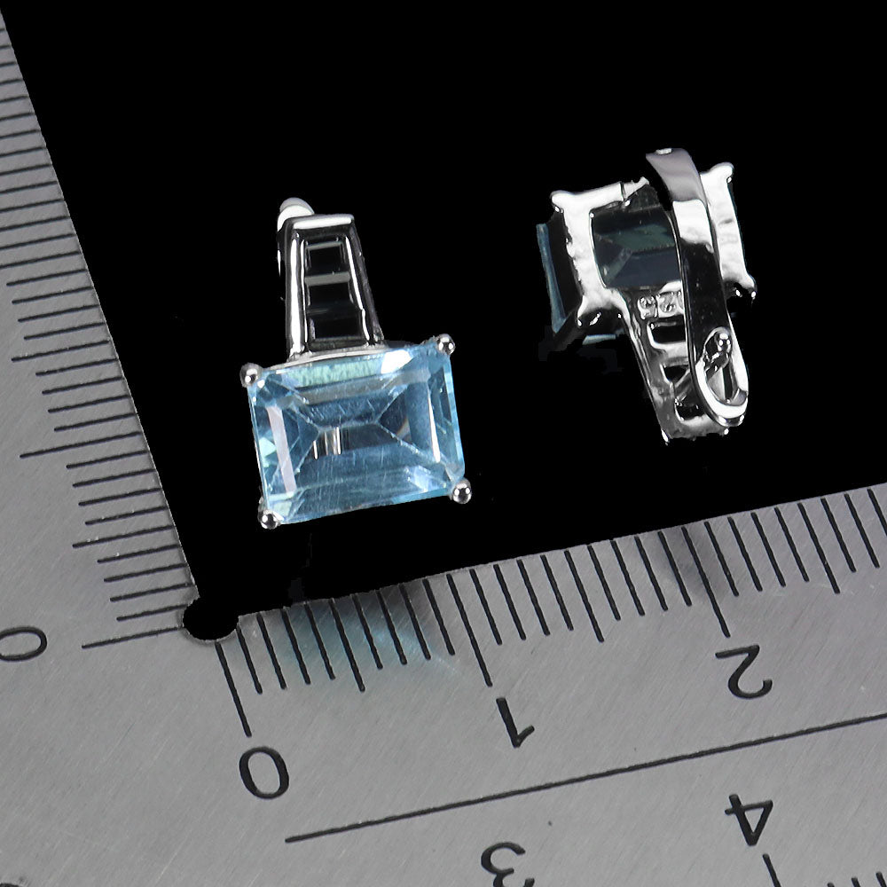 925 Sterling Silver Earrings Octagon Blue Topaz 8x6mm Spinel Gemstone Jewelry