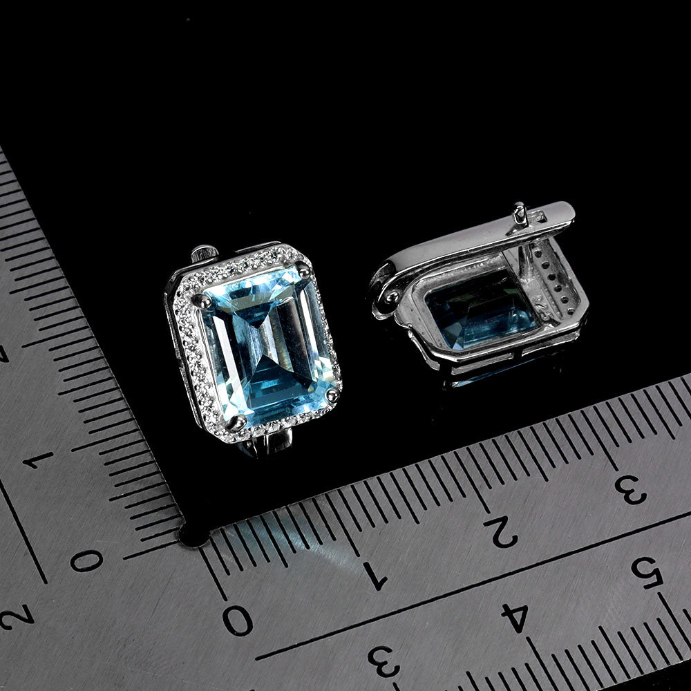 925 Sterling Silver Earrings Octagon Sky Blue Topaz 10x8mm Gemstone Jewelry