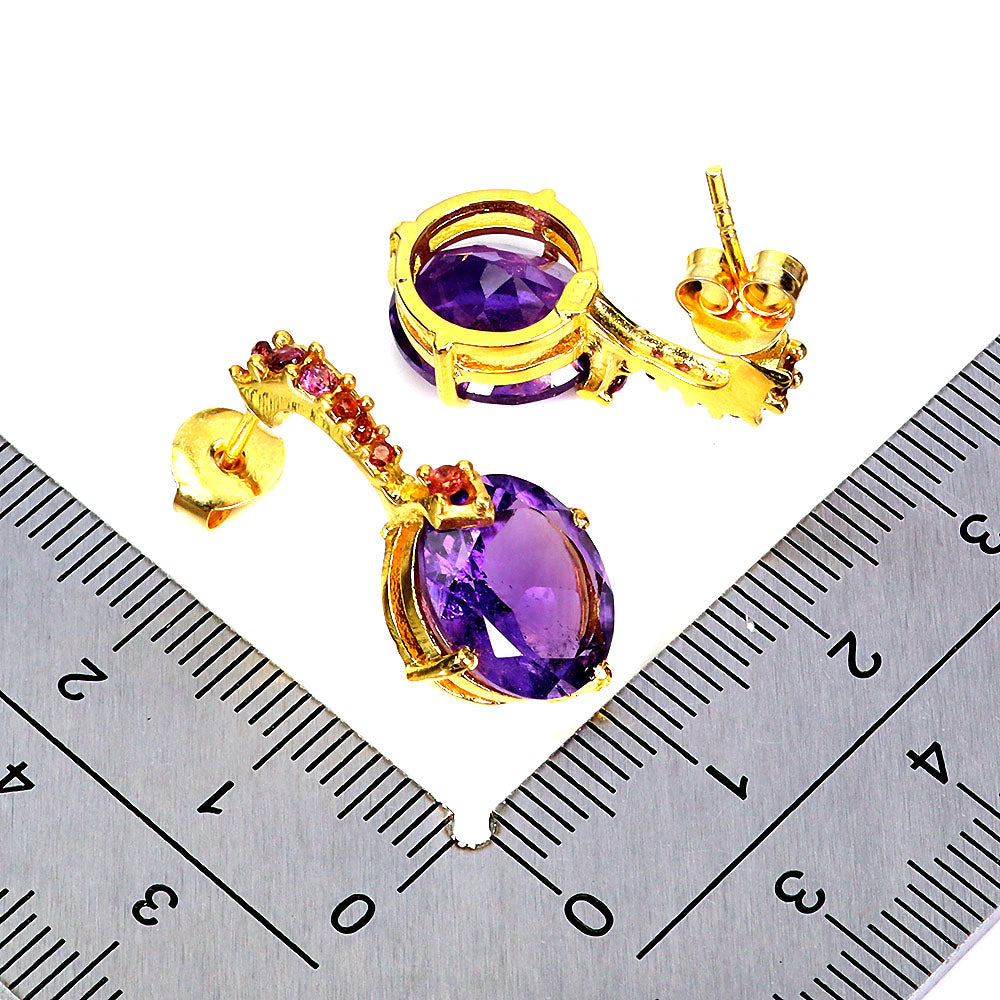 925 Sterling Silver Earrings Oval Amethyst 12x10mm Rhodolite Gemstone Jewelry