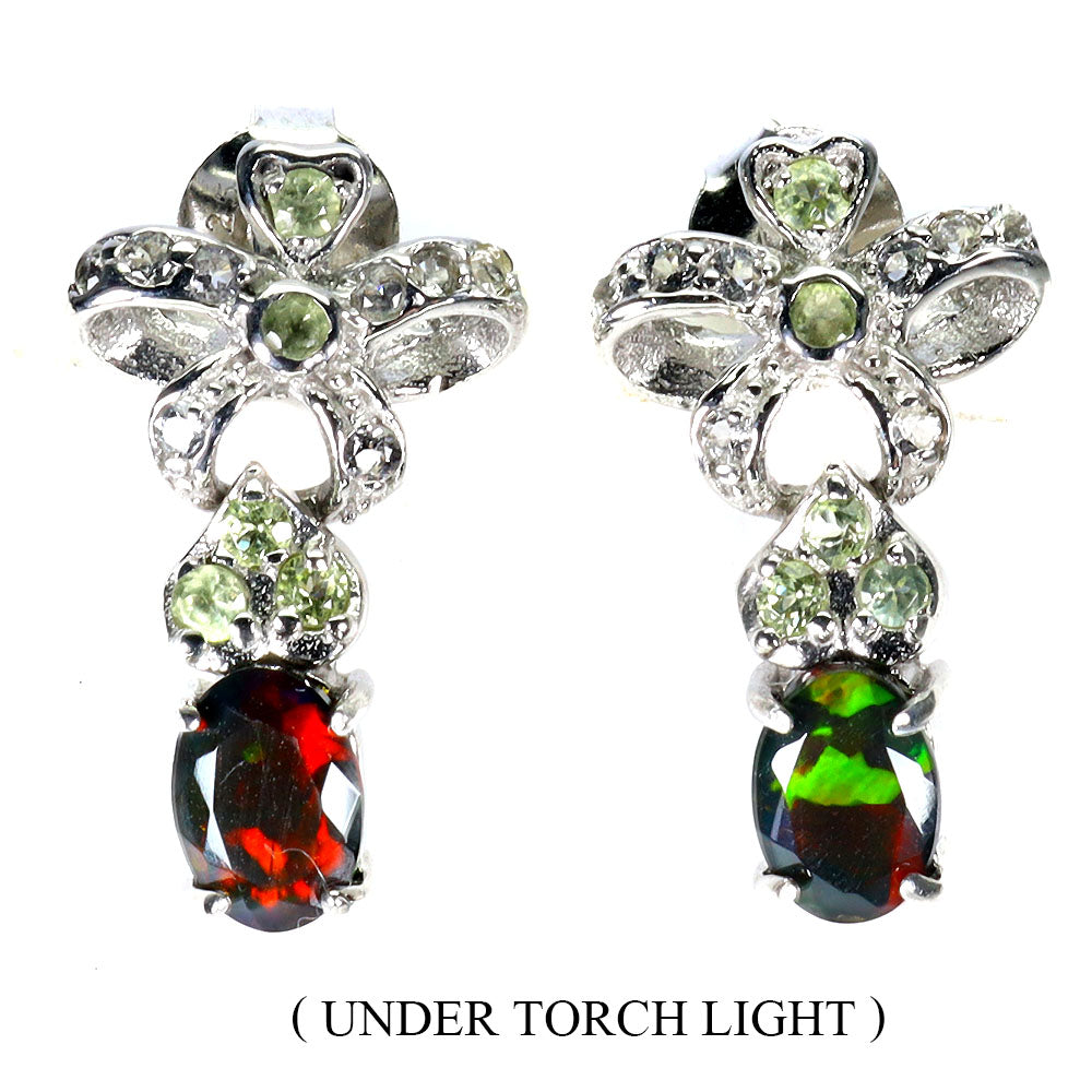 925 Sterling Silver Earrings Oval Black Opal 7x5mm Peridot Gemstone Jewelry