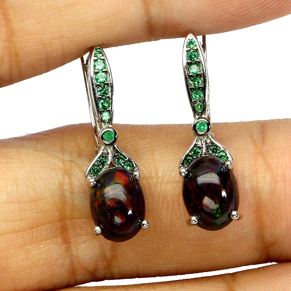 925 Sterling Silver Earrings Oval Black Opal 8x6mm Natural Gemstone Jewelry