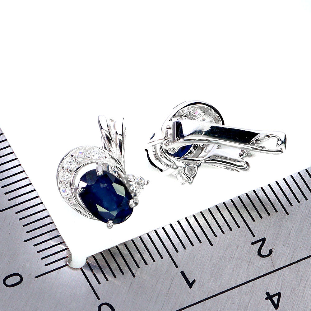 925 Sterling Silver Earrings Oval Blue Sapphire 7x5mm Natural Gemstone Jewelry