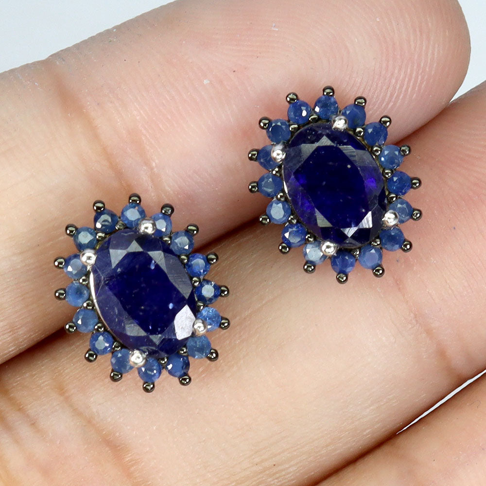 925 Sterling Silver Earrings Oval Blue Sapphire 7x5mm Sapphire Gemstone Jewelry