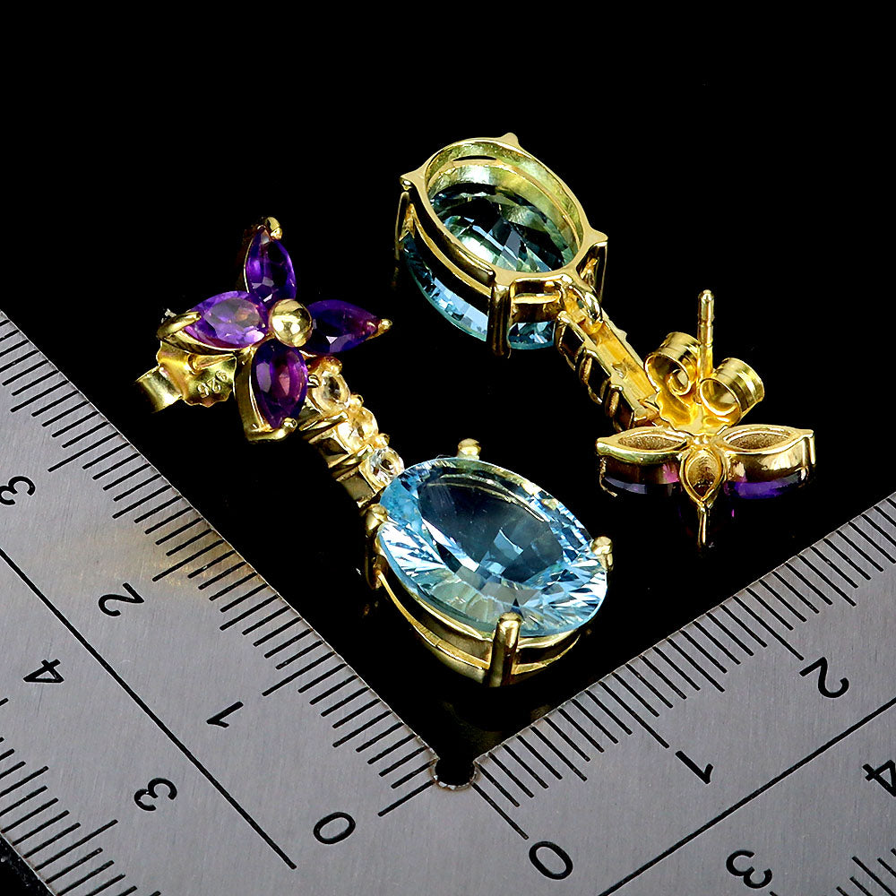 925 Sterling Silver Earrings Oval Blue Topaz 14x10mm Amethyst Citrine Gemstone