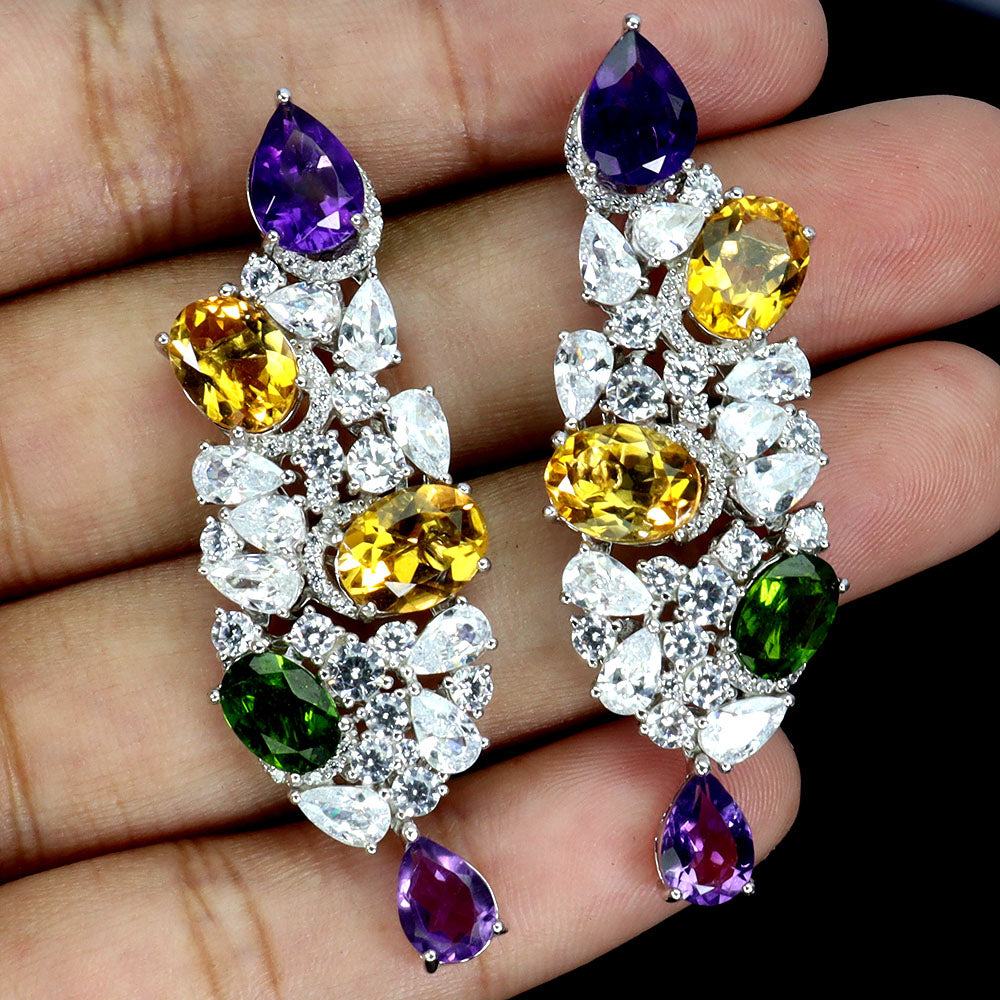 925 Sterling Silver Earrings Oval Citrine 8x6mm Amethyst Gemstone Jewelry