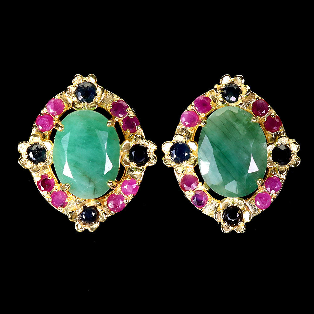 925 Sterling Silver Earrings Oval Emerald 12x10mm Ruby Sapphire Gemstone Jewelry