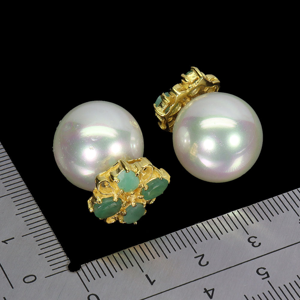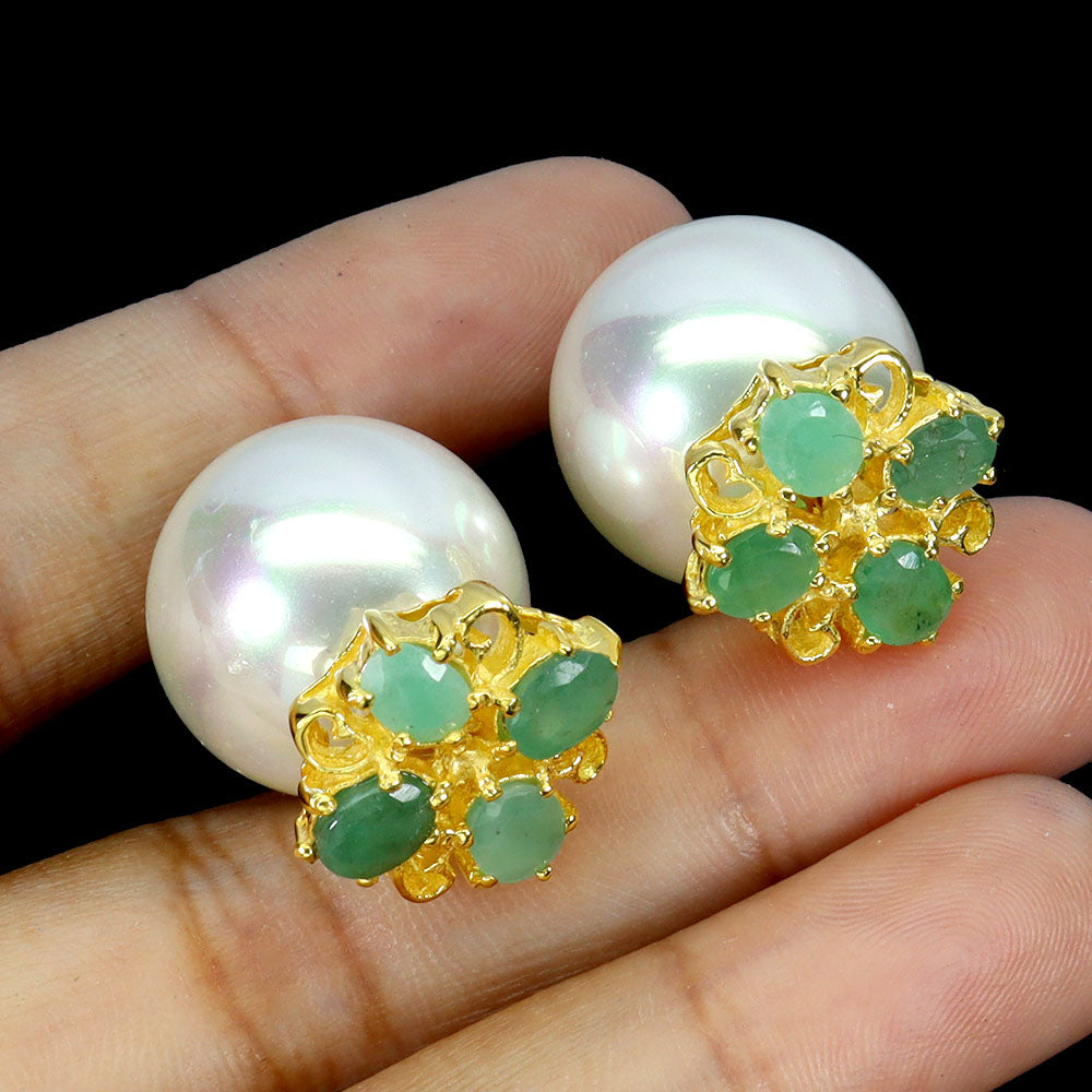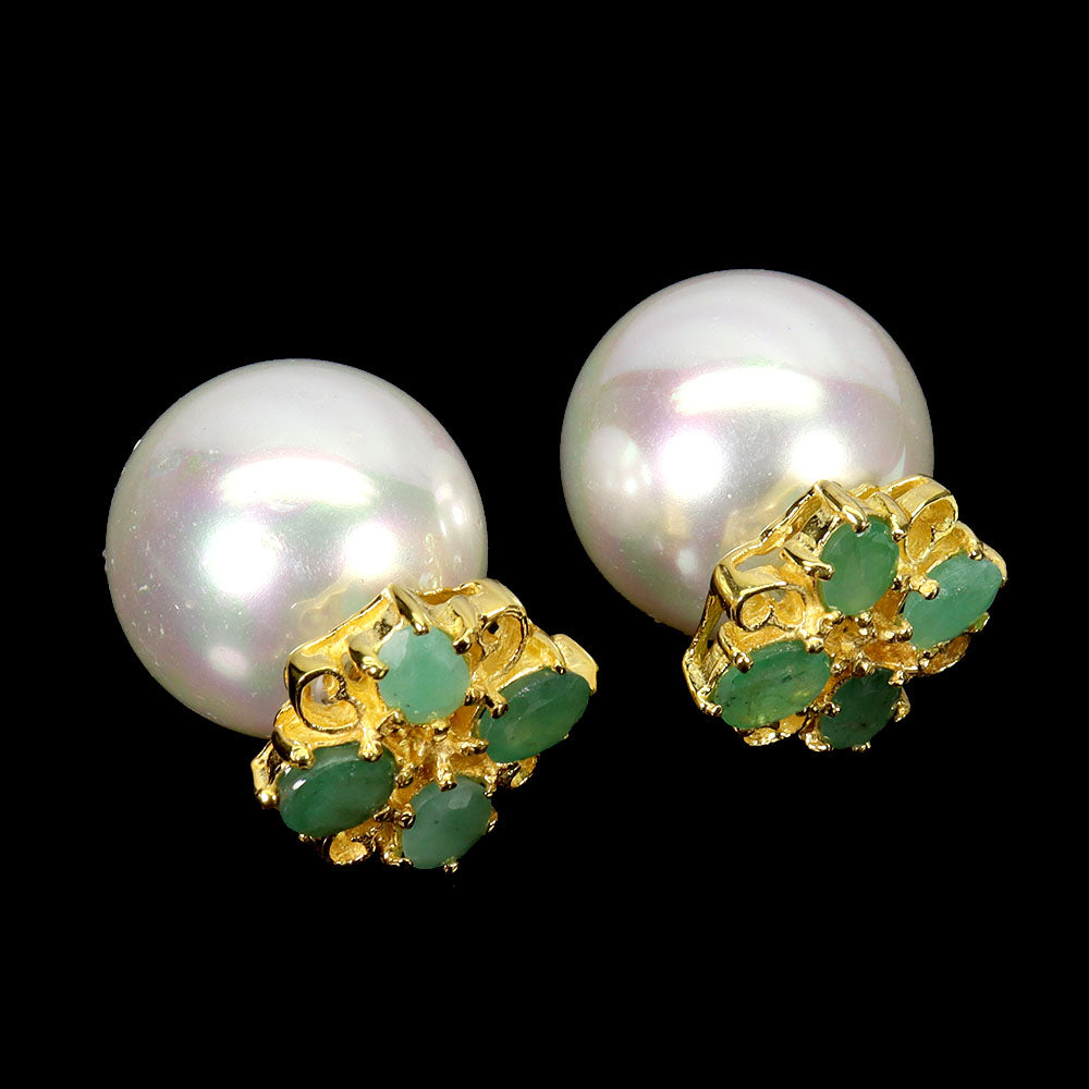 925 Sterling Silver Earrings Oval Emerald 5x4mm Pearl Natural Gemstone Jewelry