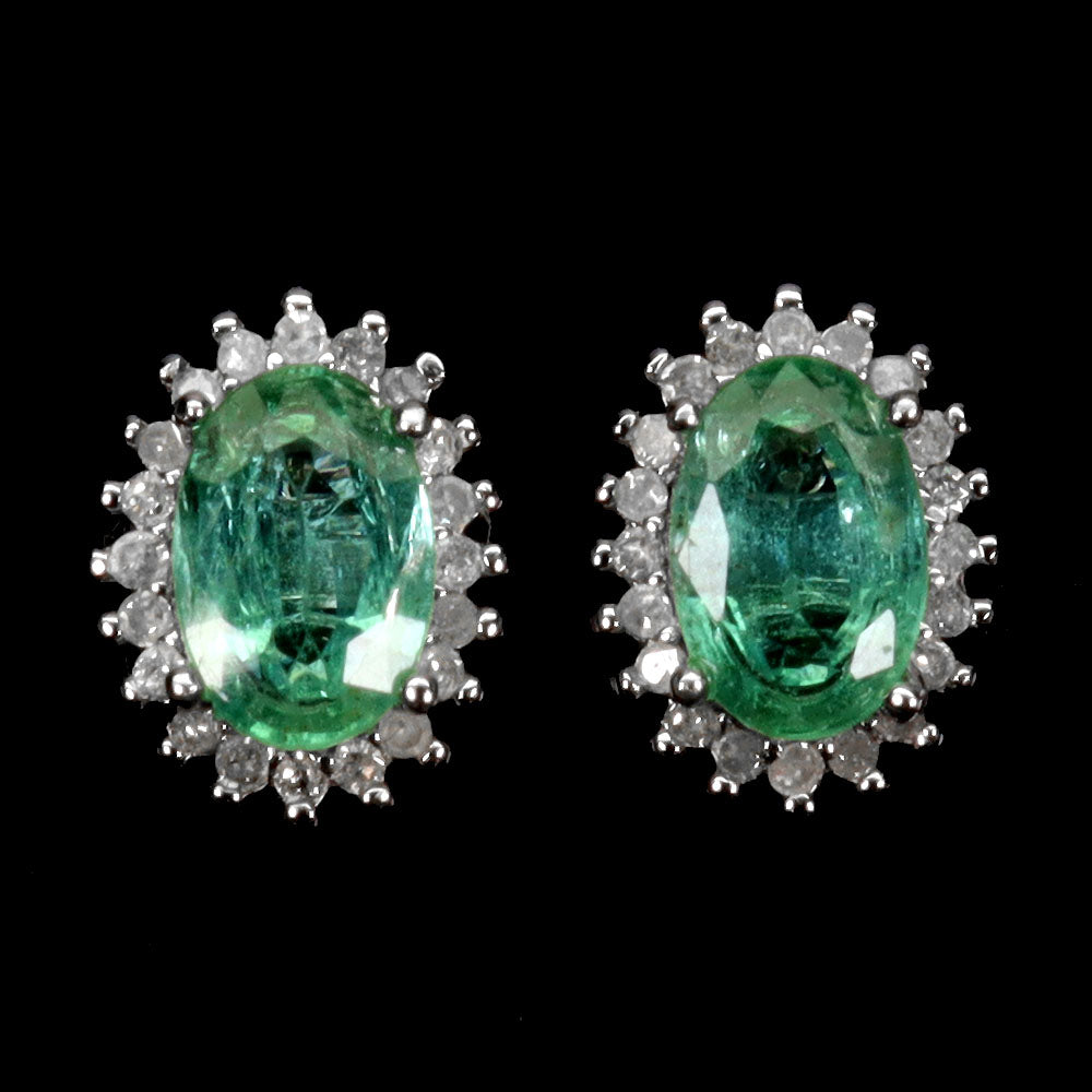 925 Sterling Silver Earrings Oval Emerald 6x4mm Diamond 40pcs Gemstone Jewelry
