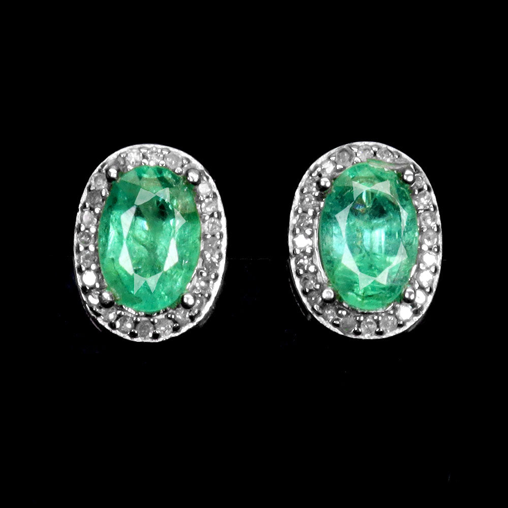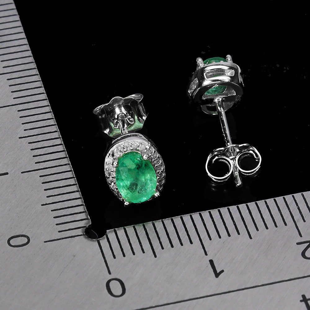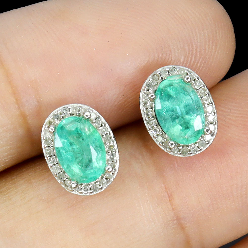 925 Sterling Silver Earrings Oval Emerald 6x4mm Diamond 48pcs Gemstone Jewelry