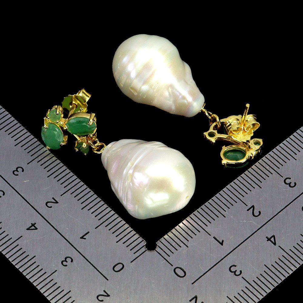925 Sterling Silver Earrings Oval Emerald 6x4mm Pearl Natural Gemstone Jewelry