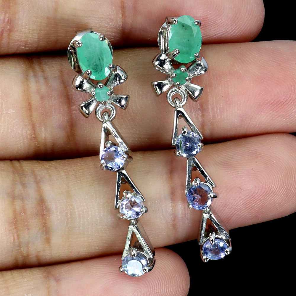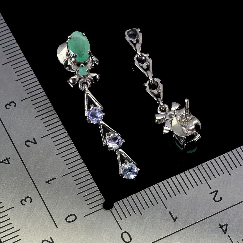 925 Sterling Silver Earrings Oval Emerald 6x4mm Tanzanite Gemstone Jewelry