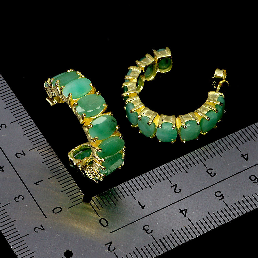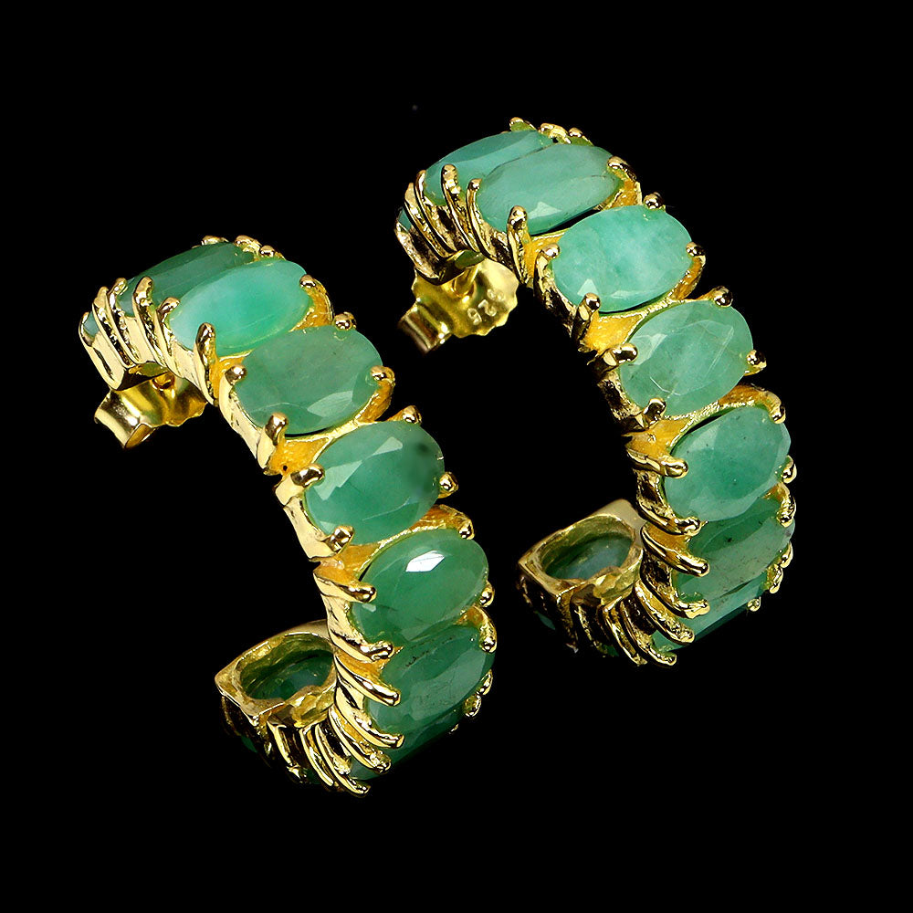 925 Sterling Silver Earrings Oval Emerald 7x5mm Natural Gemstone Jewelry
