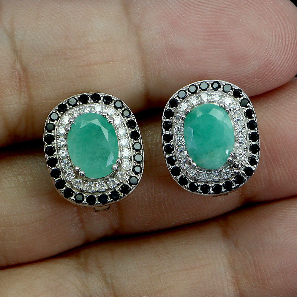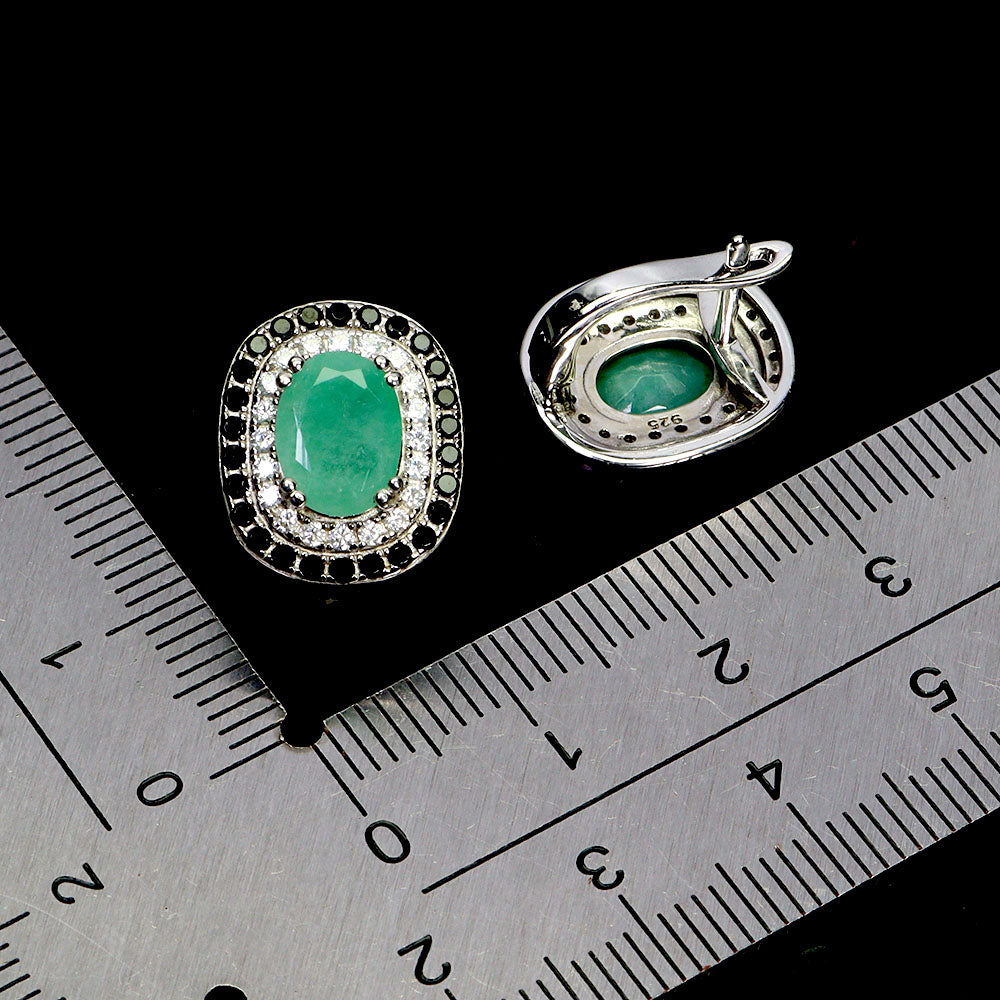 925 Sterling Silver Earrings Oval Emerald 7x5mm Spinel Natural Gemstone Jewelry