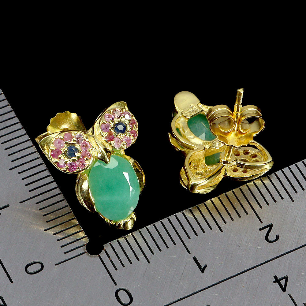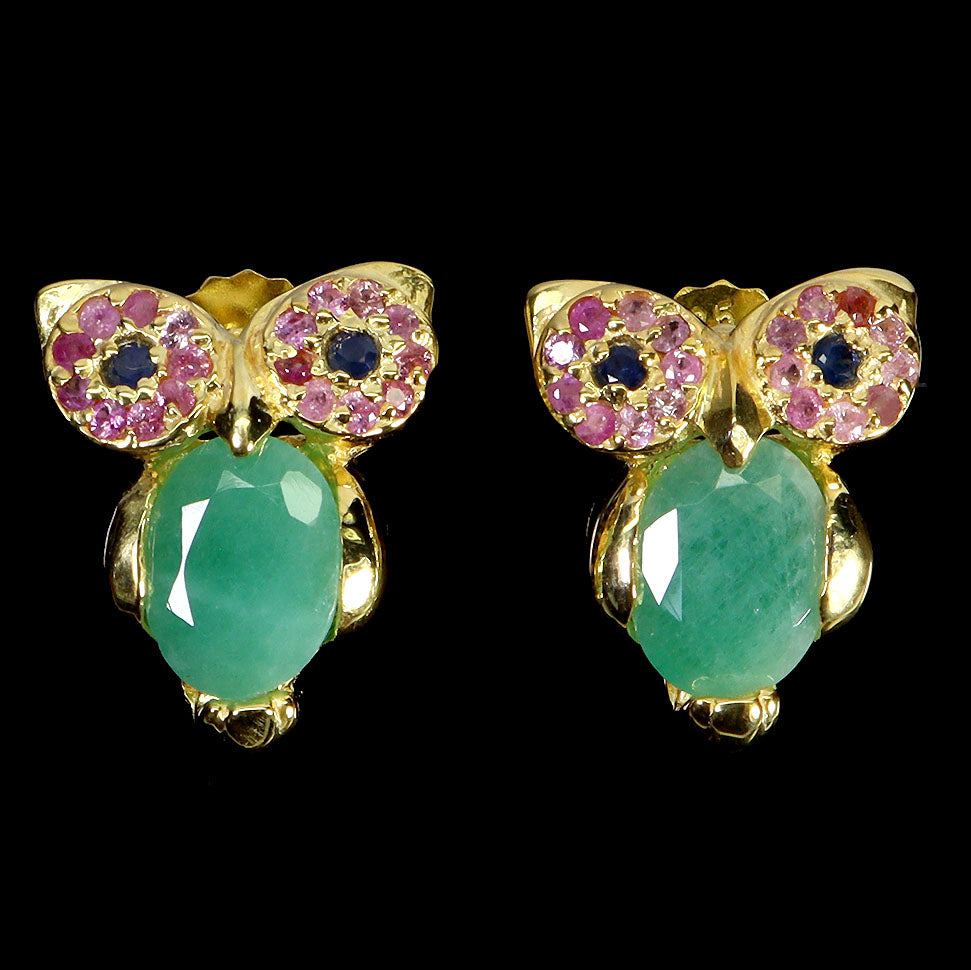 925 Sterling Silver Earrings Oval Emerald 8x6mm Ruby Owl Gemstone Jewelry