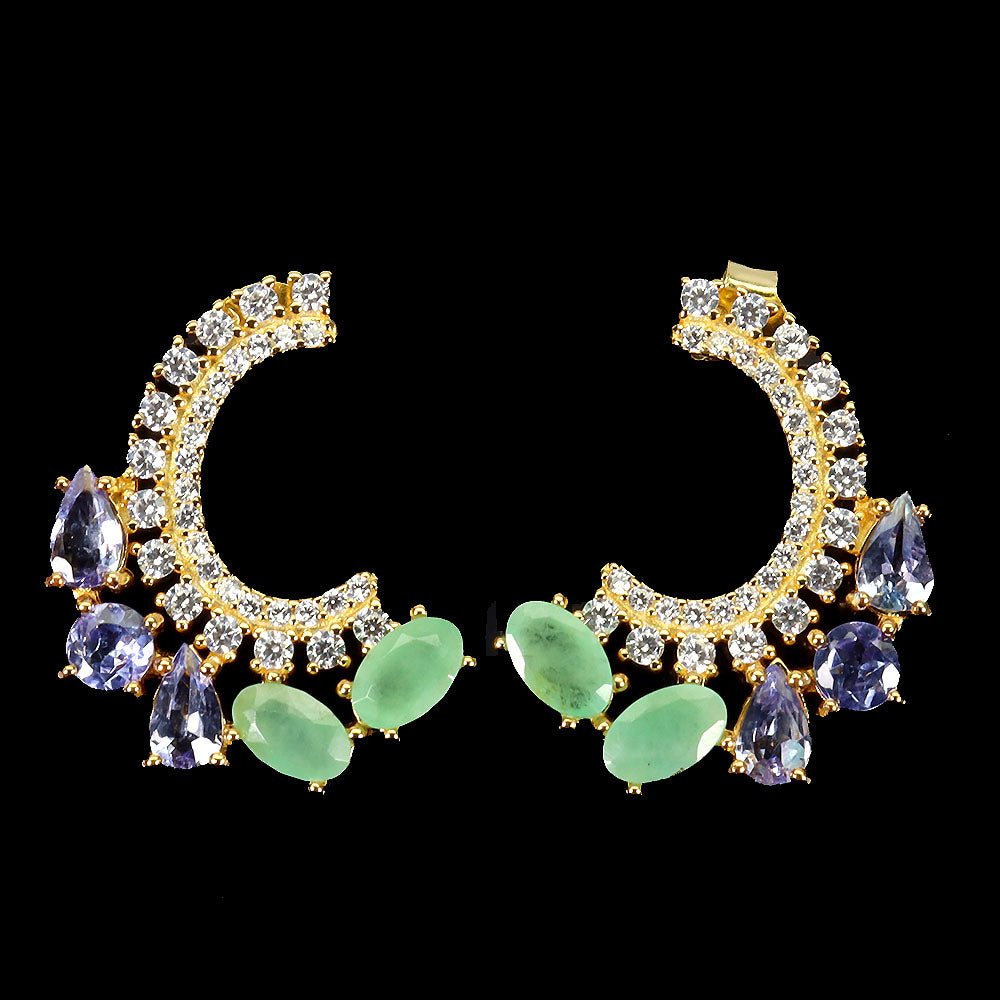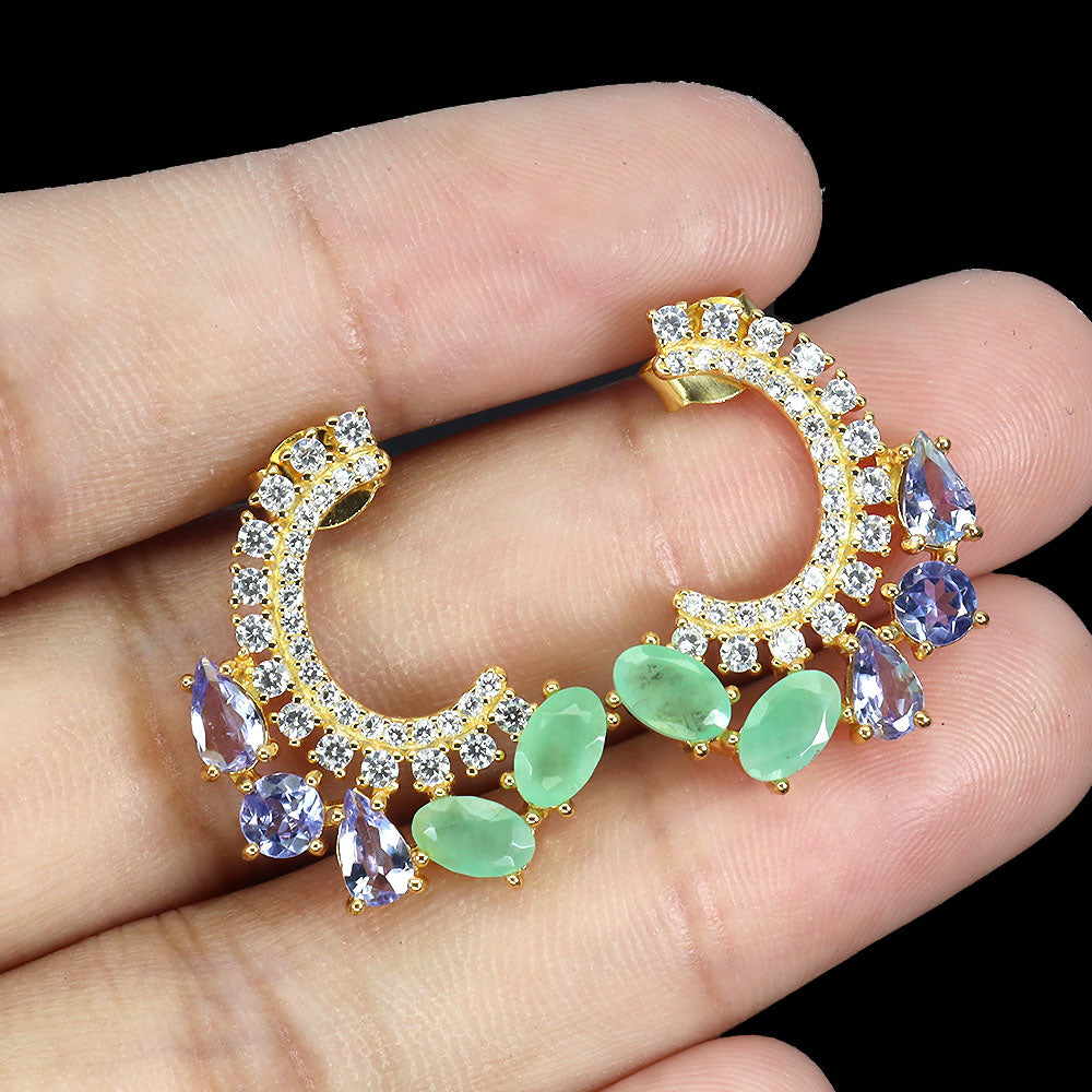 925 Sterling Silver Earrings Oval Emerald Tanzanite Natural Gemstone Jewelry