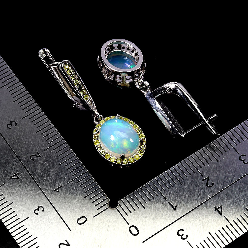 925 Sterling Silver Earrings Oval Fire Opal 10x8mm Sapphire Gemstone Jewelry