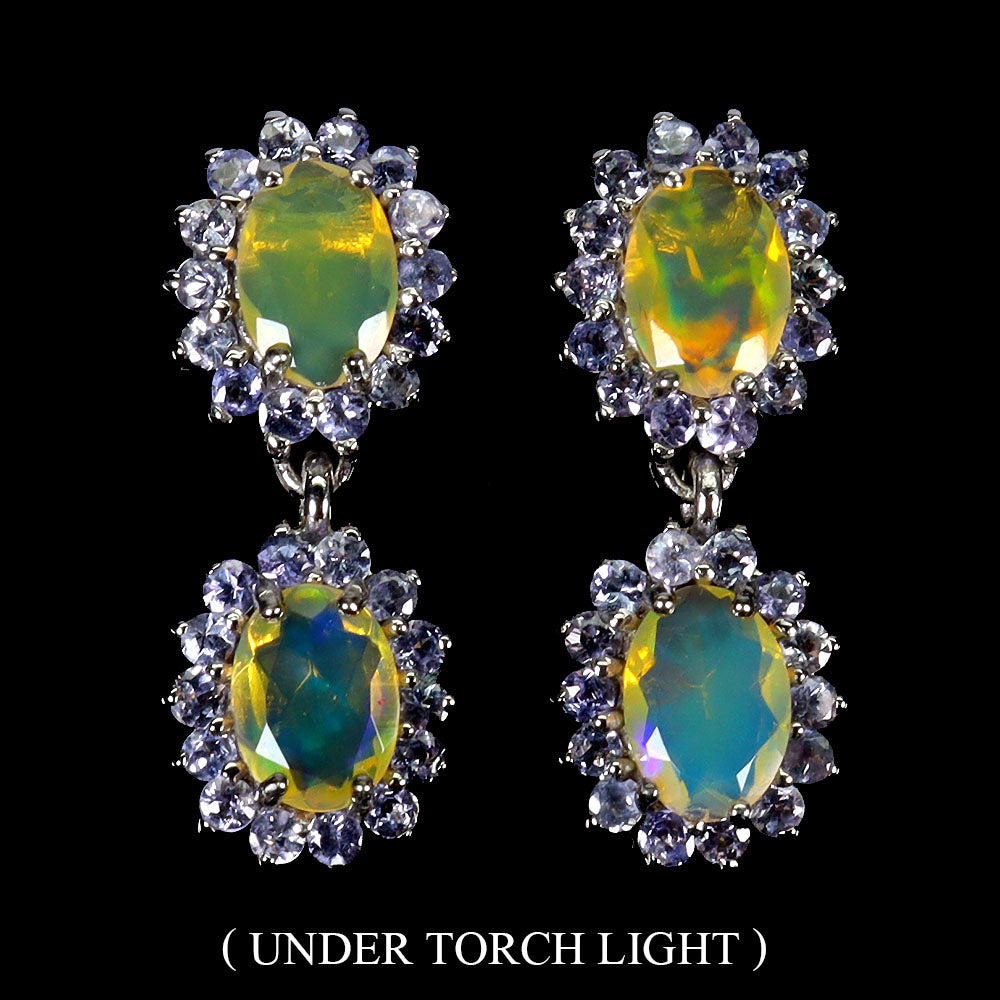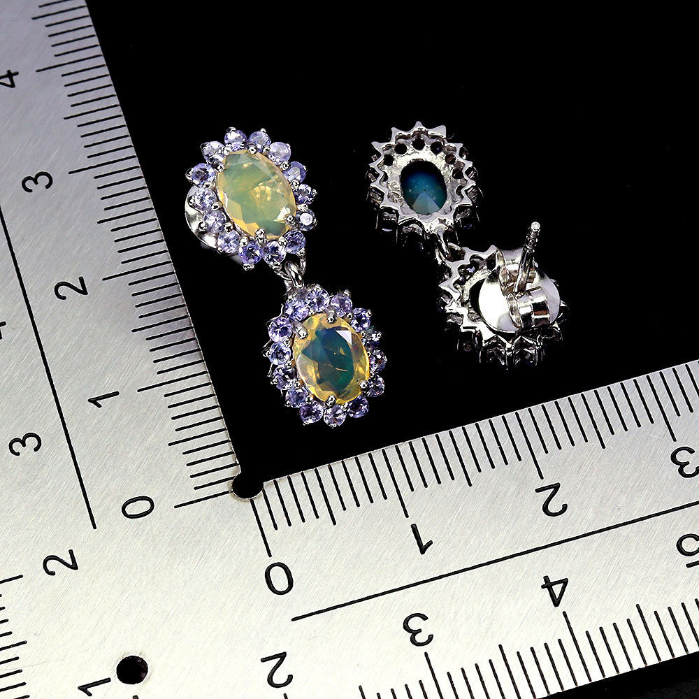 925 Sterling Silver Earrings Oval Fire Opal 7x5mm Tanzanite Gemstone Jewelry