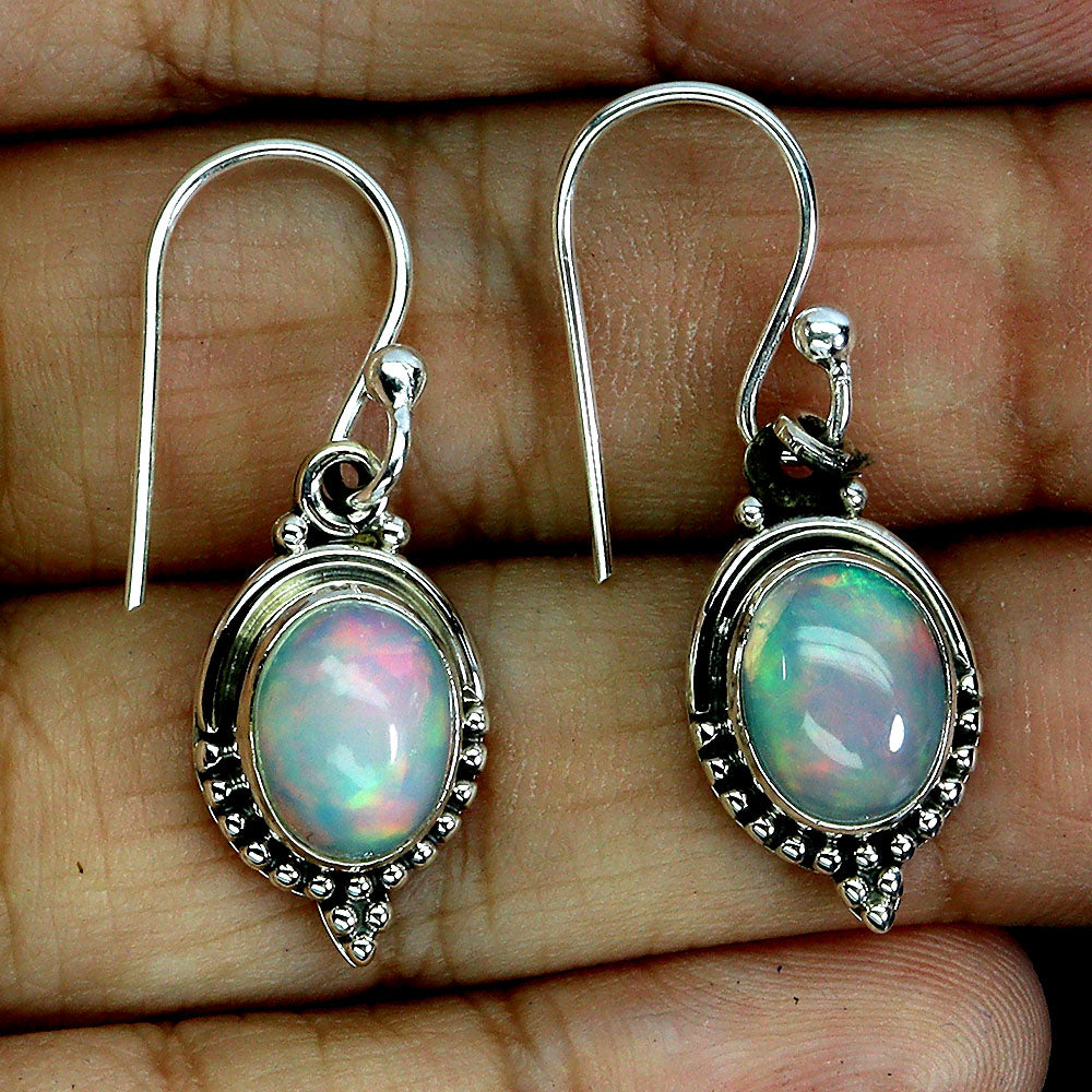925 Sterling Silver Earrings Oval Fire Opal 8x6mm Natural Gemstone Jewelry