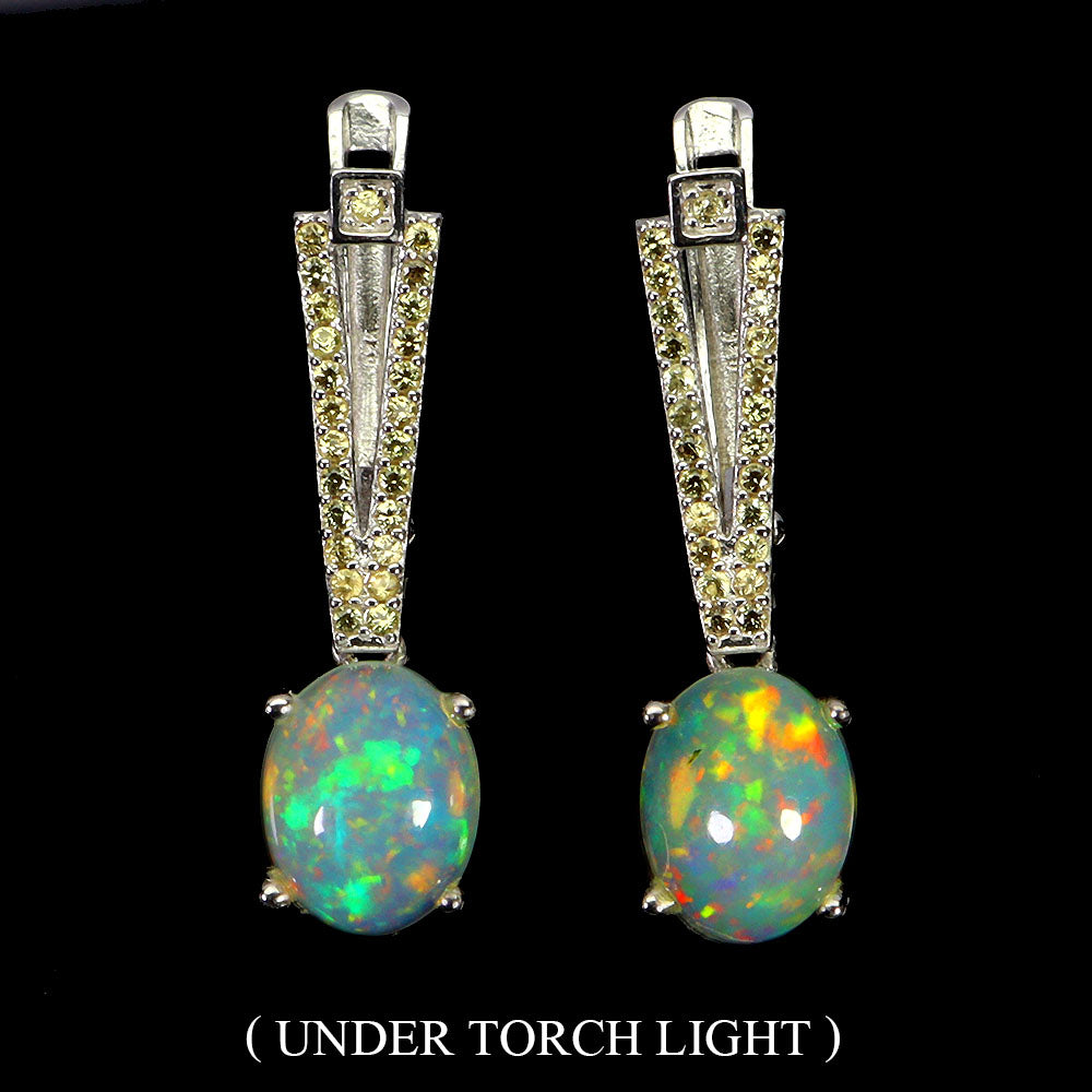 925 Sterling Silver Earrings Oval Fire Opal 9x7mm Sapphire Gemstone Jewelry